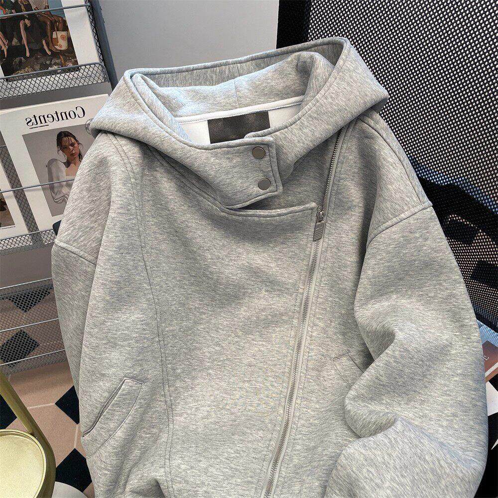 Upscale潮人 设计感双拉链连帽卫衣开衫男女国潮高街休闲加绒外套