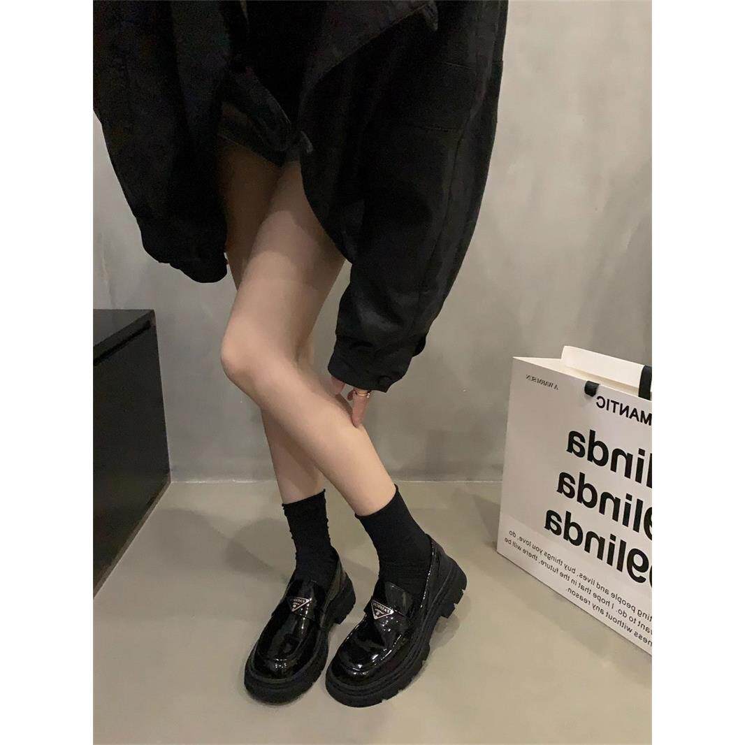 香港时尚女式覆古乐福鞋2025春夏新款黑色法式厚底英式小皮鞋