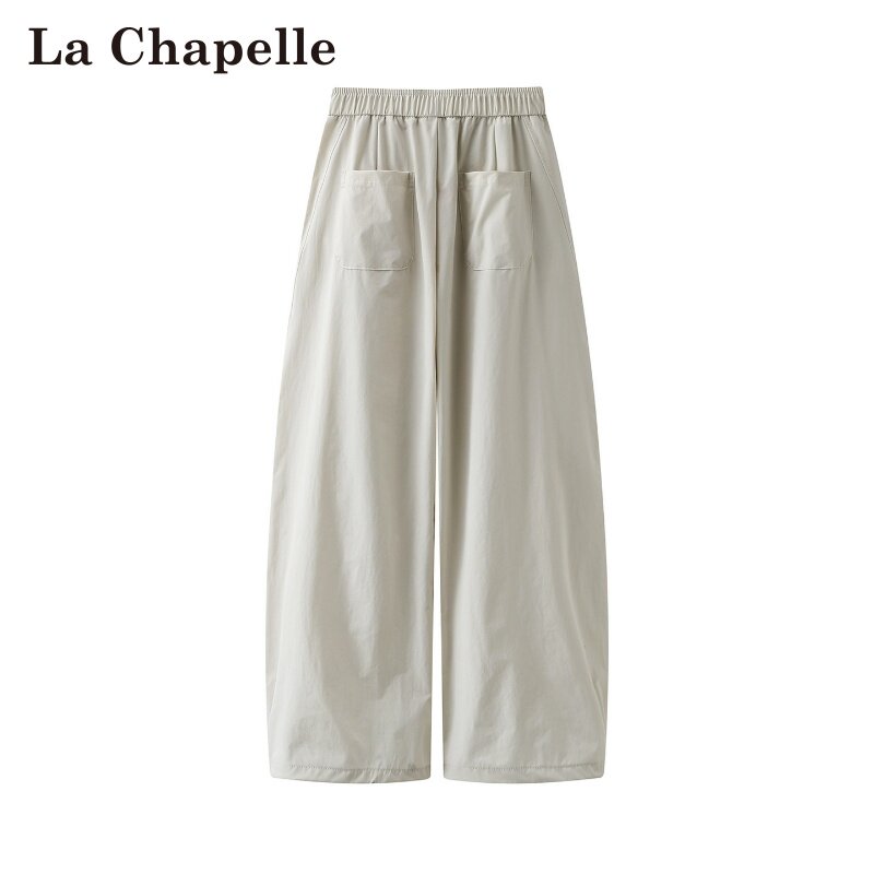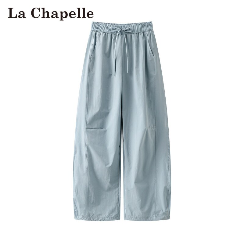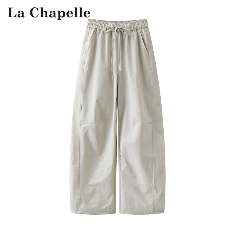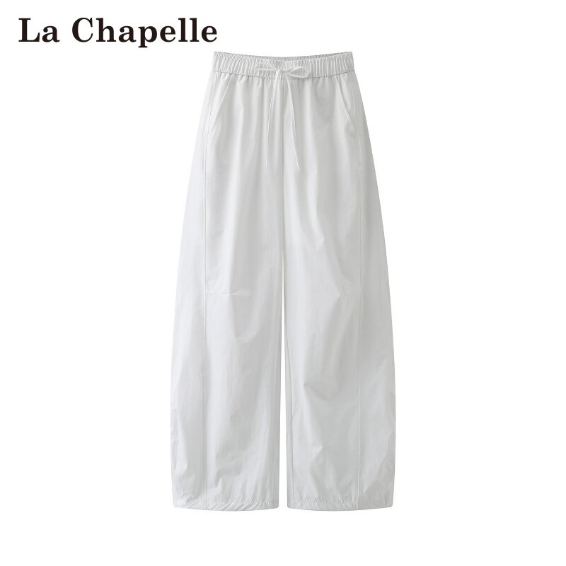 拉夏贝尔/La Chapelle春季新款纯色高腰抽绳日韩风薄款弯刀裤子女