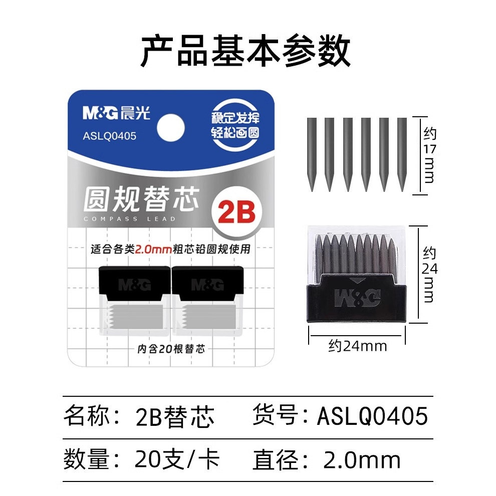 淘宝晨光文具圆规2B铅芯替芯考试圆规替芯金属圆规替芯2.0mm直径圆规通用铅芯铅芯替换芯圆规替换芯新款圆规铅芯
