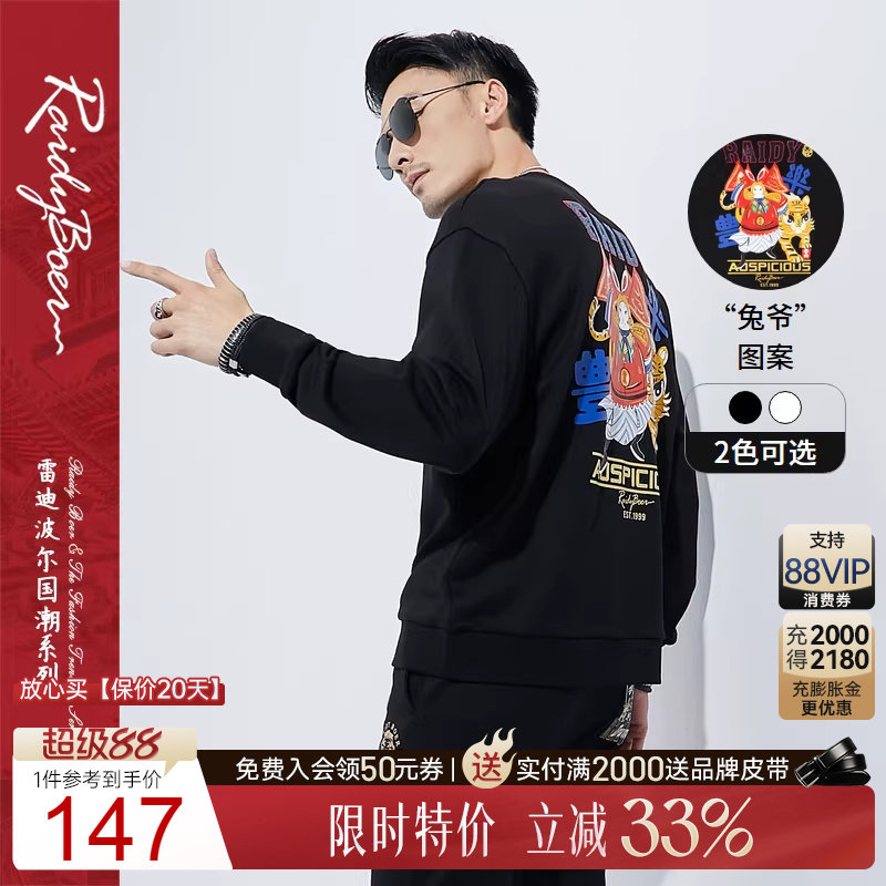 --------------------- Raidy Boer/雷迪波尔秋冬男士国潮圆领烫钻烫印图案卫衣6619 【原售价】1599元 【现售价】146.8元 【推荐理由】