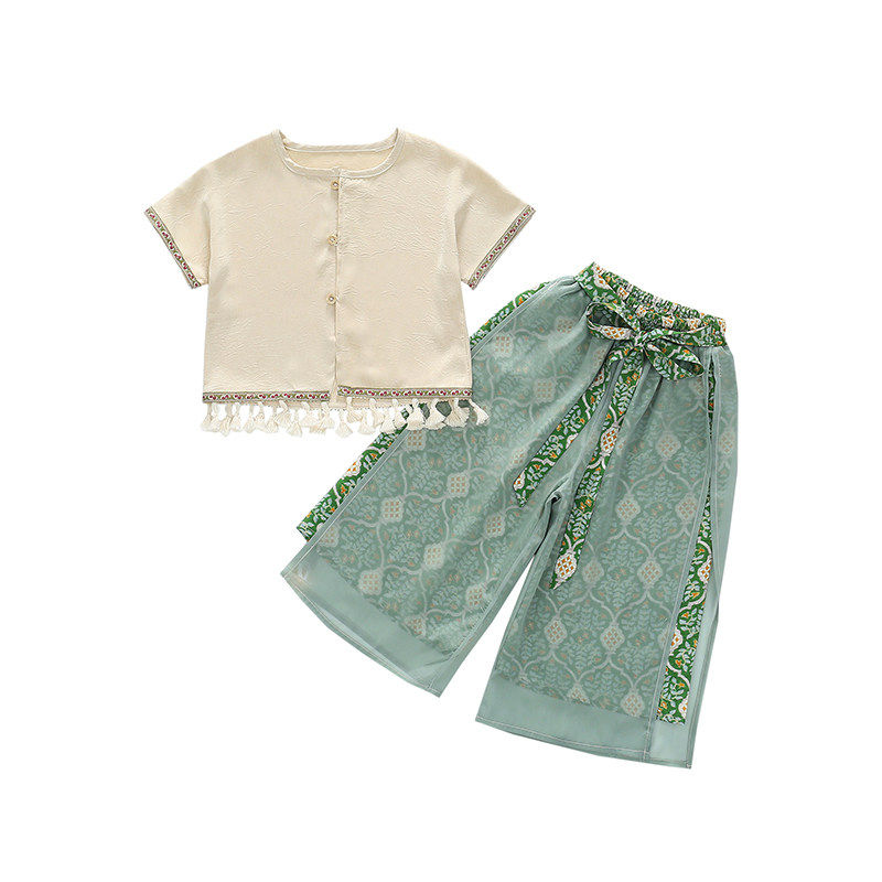 NEXT JANSO女童夏装洋气套装2026新款儿童国潮阔腿两件套宝宝衣服