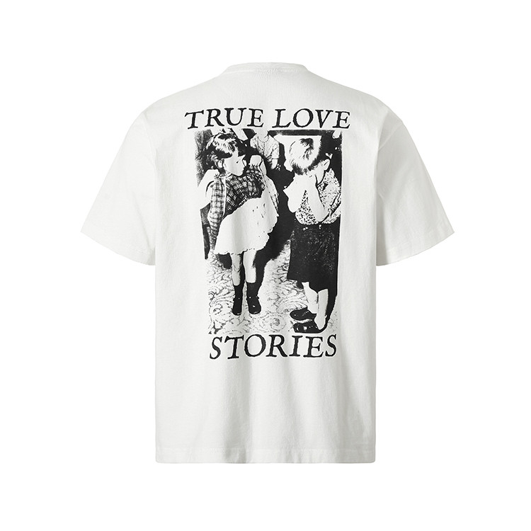 fv复线 真爱故事复古双面印花白色短袖tee