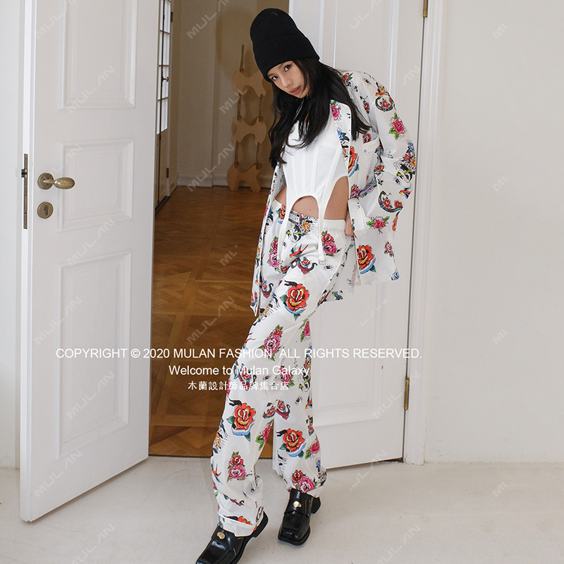 【折】设计师品牌LOST GENERAL 2R春夏新款纹身印花衬衫长裤套装
