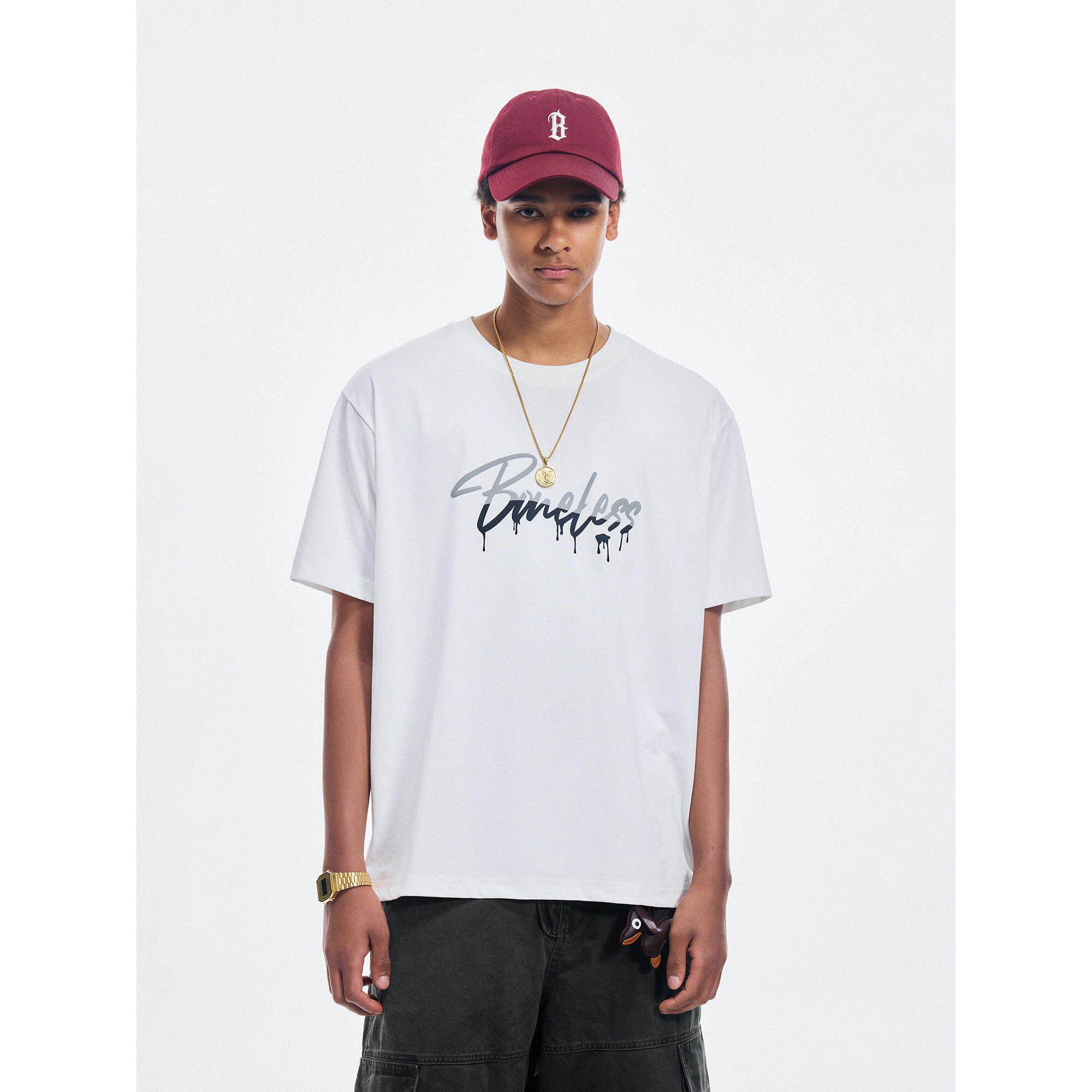 BONELESS发泡印花短袖撞色凉感速干夏季新款宽松分割设计T恤男女