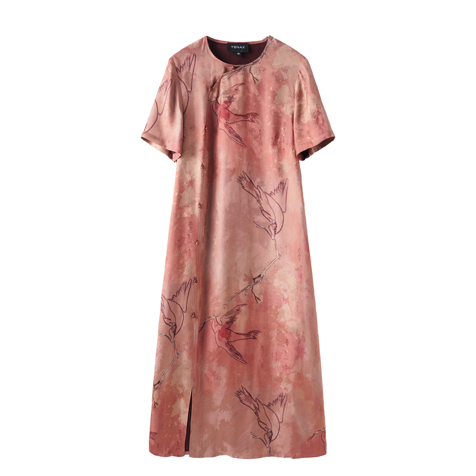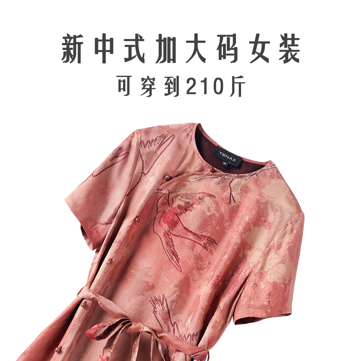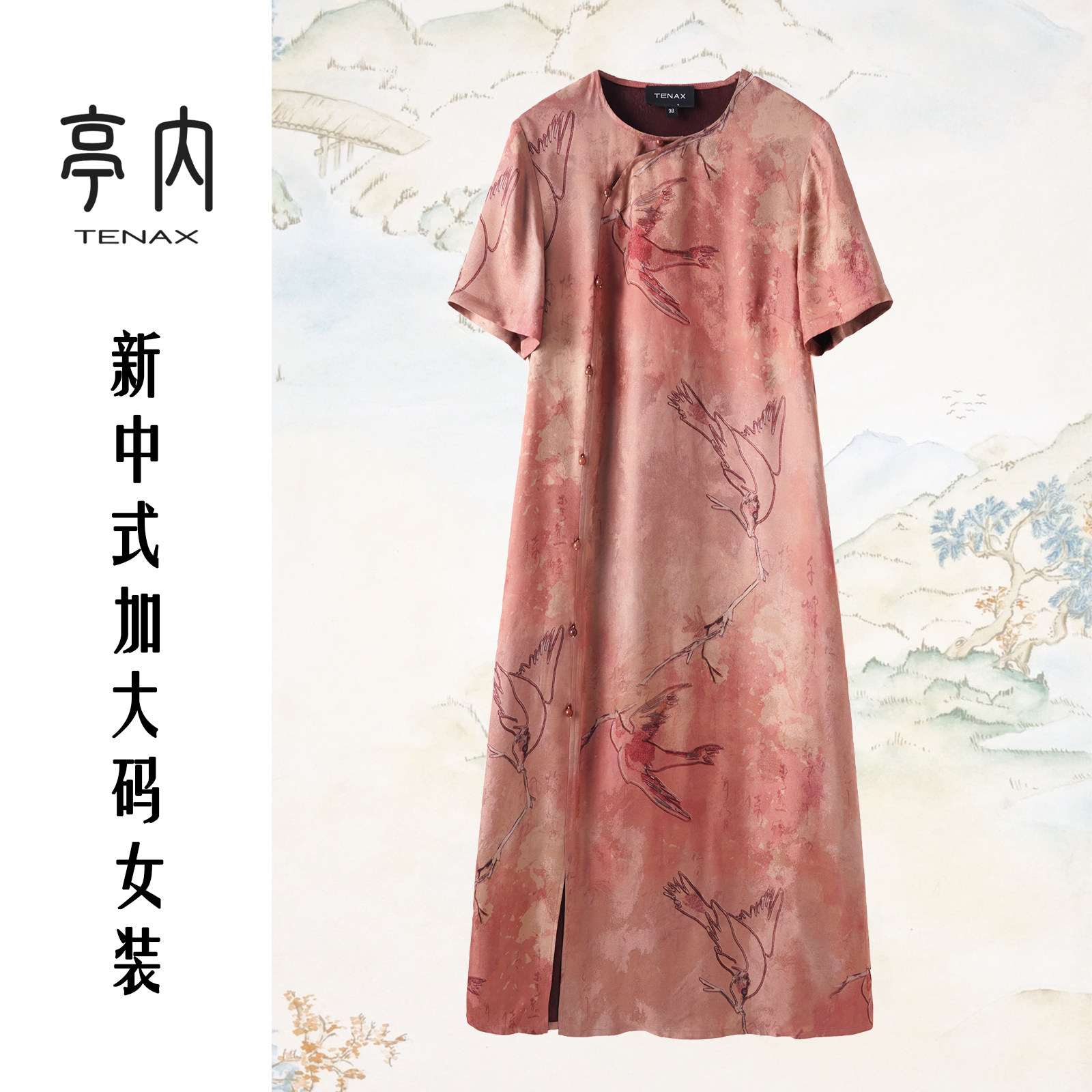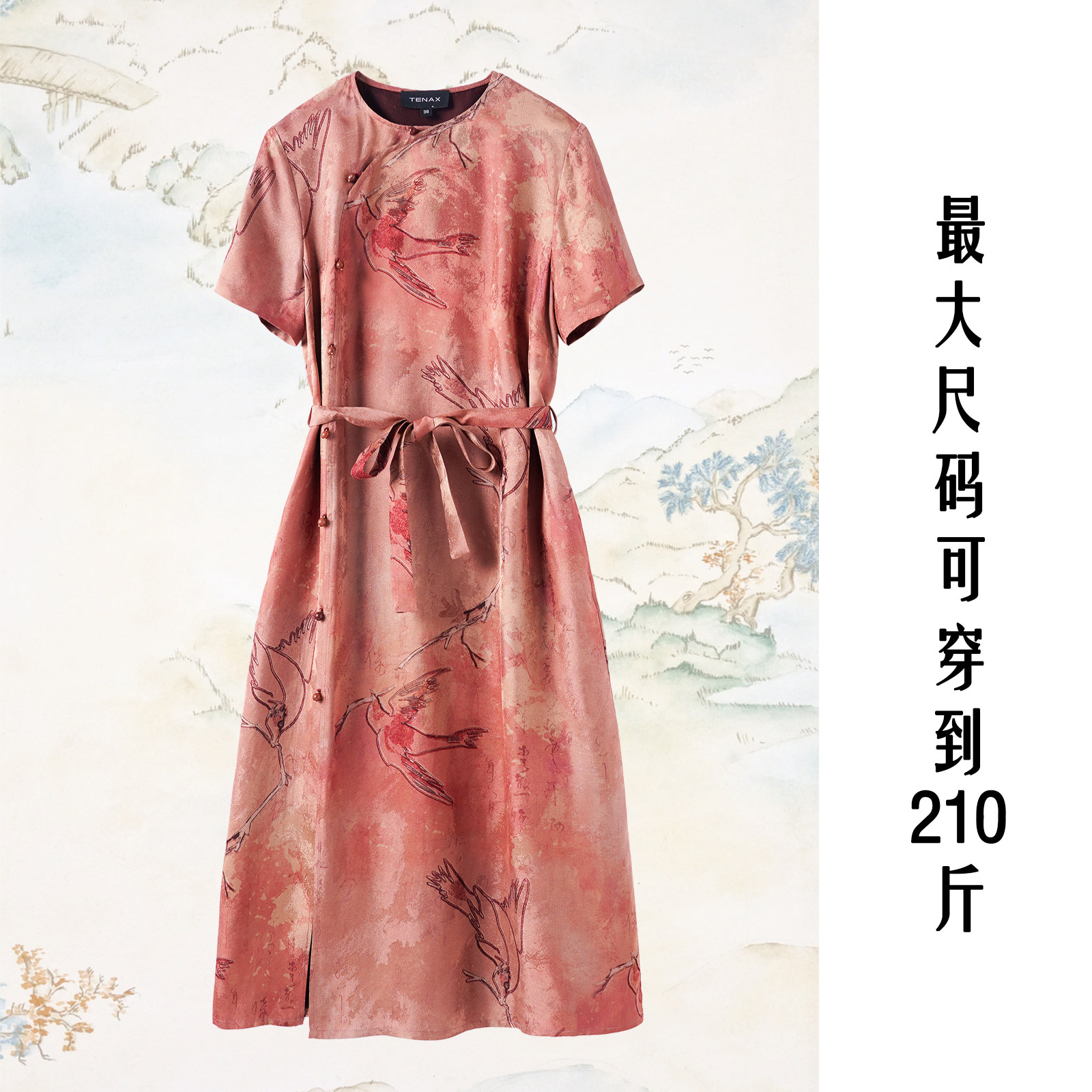 淘宝TENAX中年妈妈宽松加大码夏新款新中式国风改良桑蚕丝连衣裙
