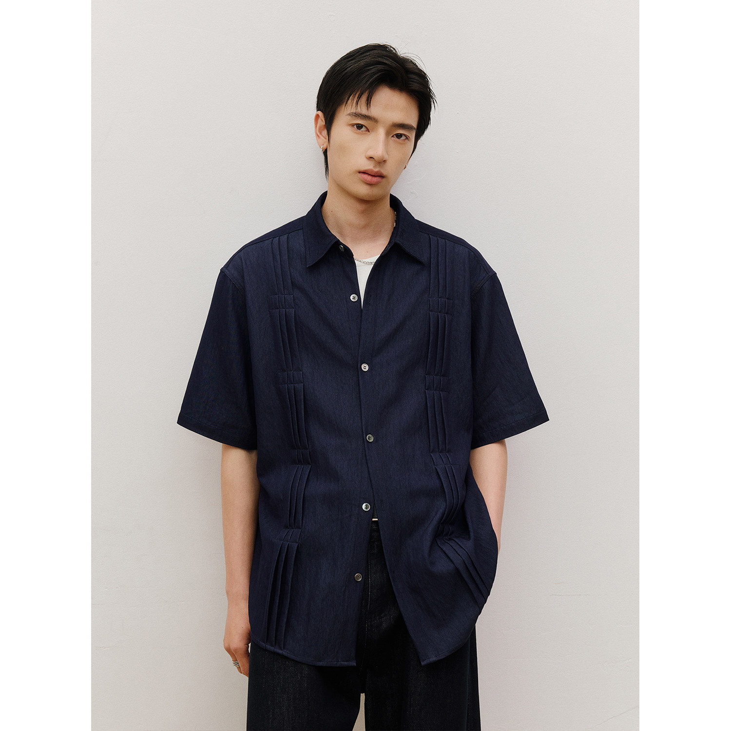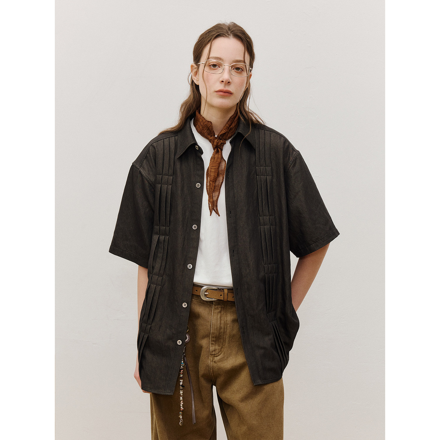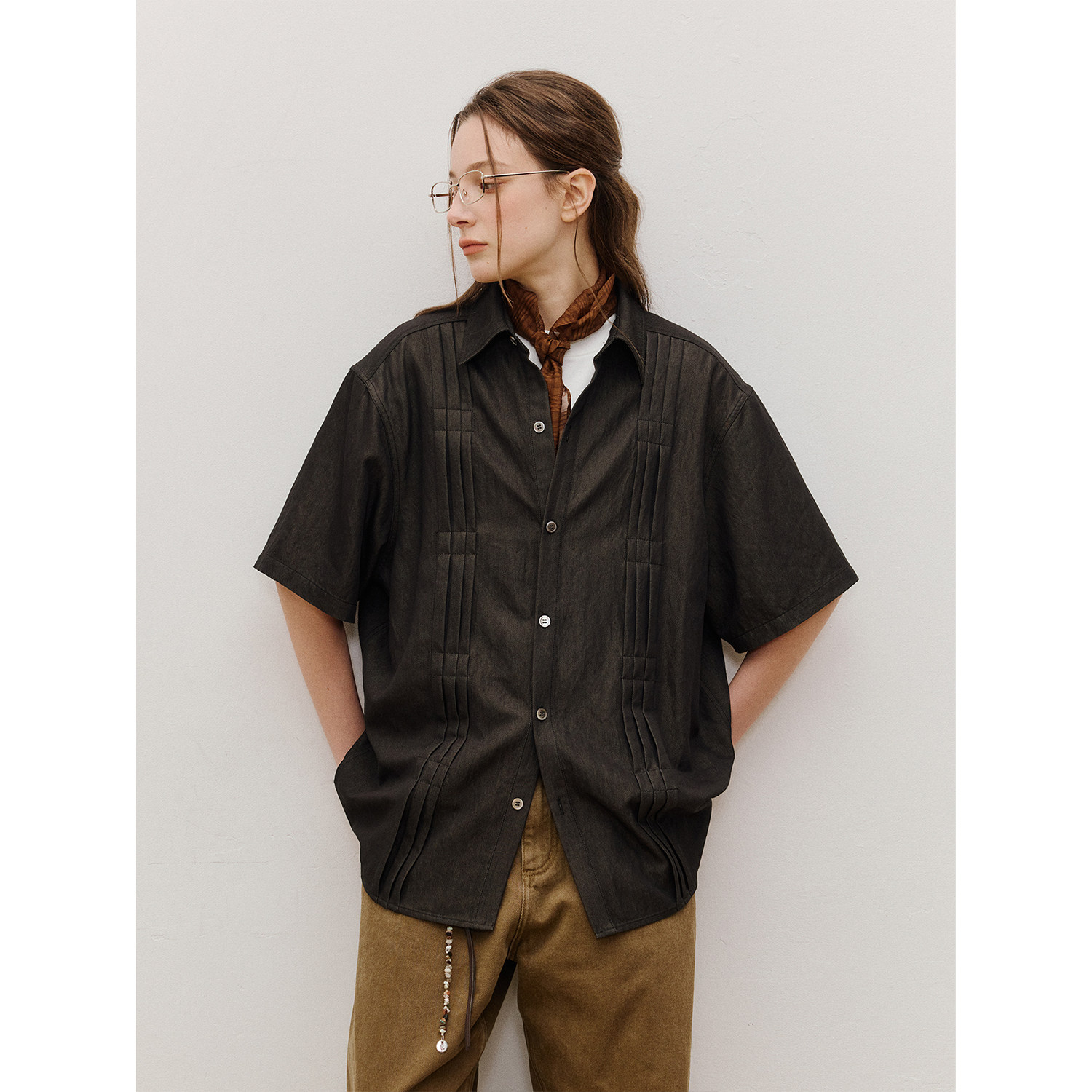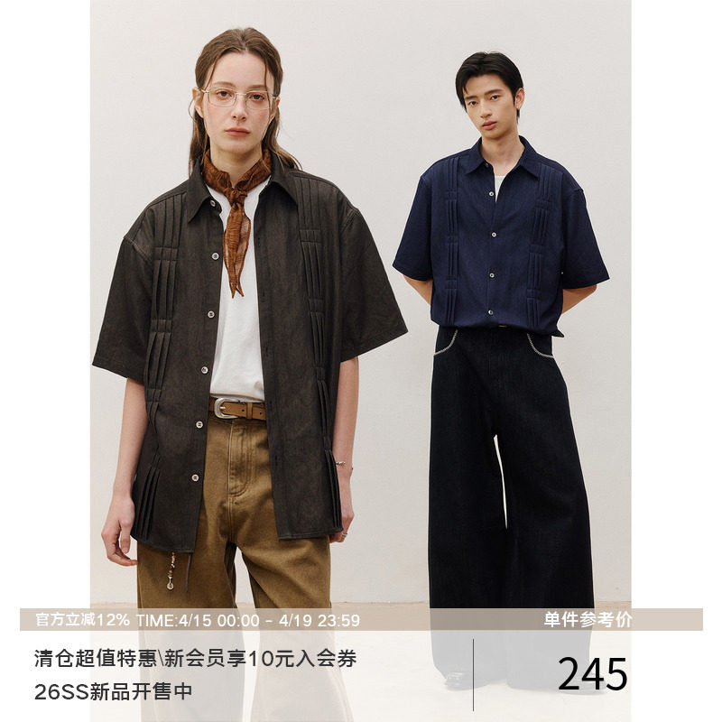 LR MADE 26SS 立体打褶锁线 仿原牛花纱质感 休闲复古短袖衬衫