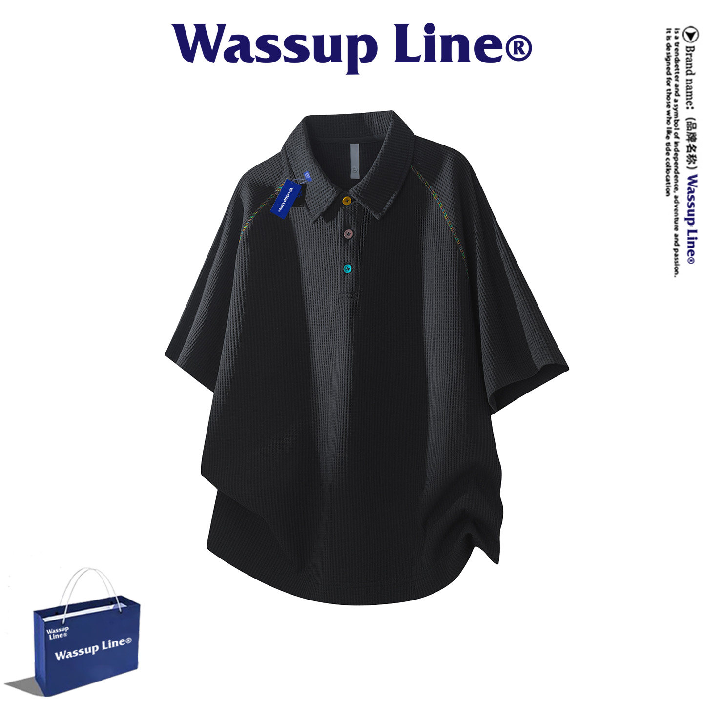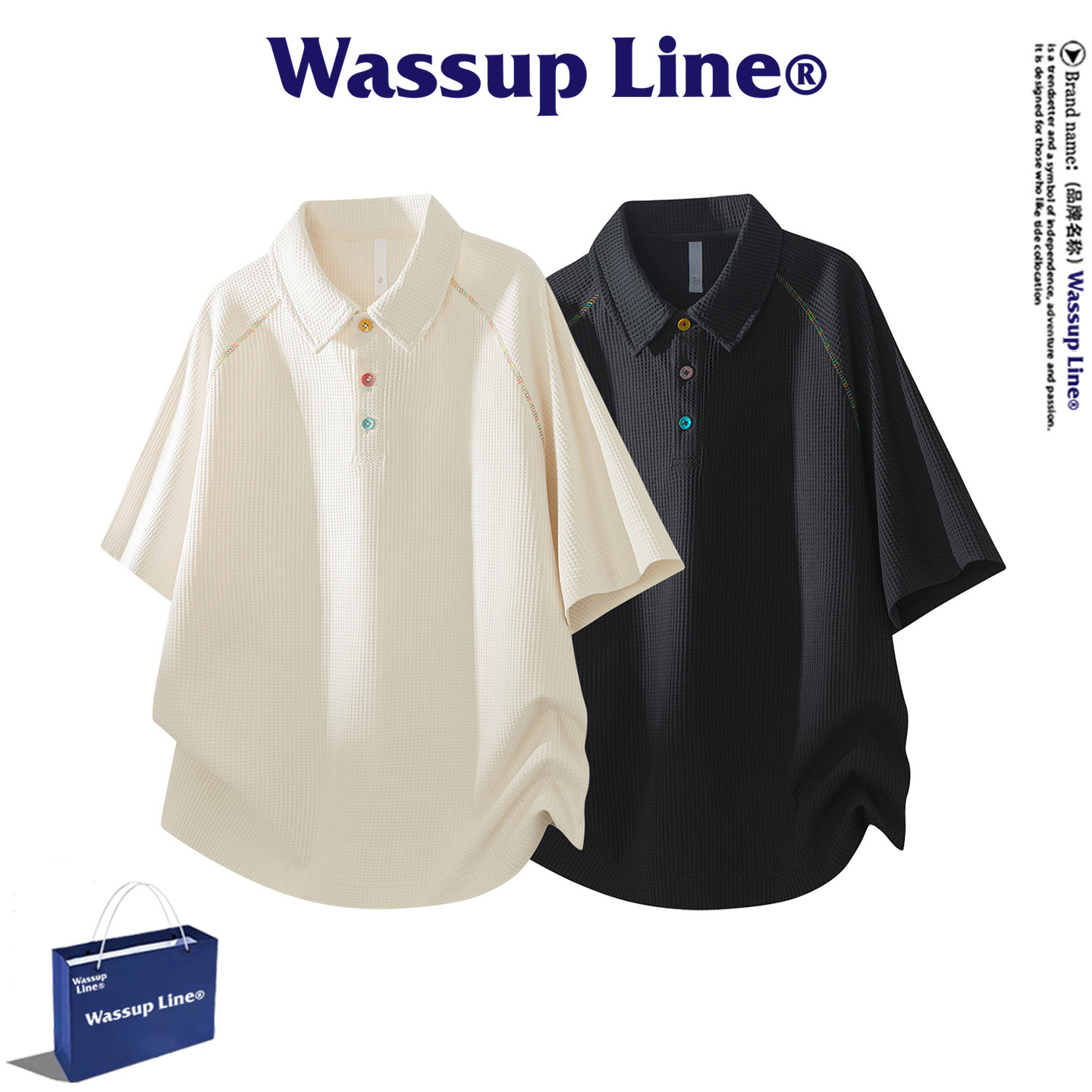 WASSUP Line潮牌休闲短袖T恤男夏季简约百搭POLO衫舒适翻领上衣