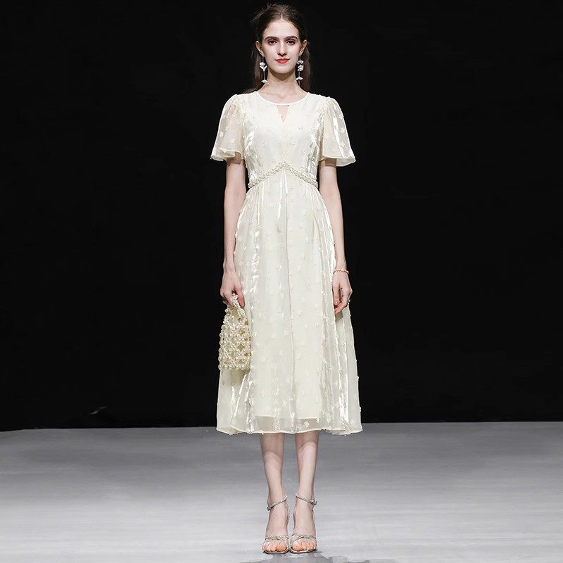 2026夏季新款温柔仙女重工立体花朵度假小众收腰大摆气质连衣裙女
