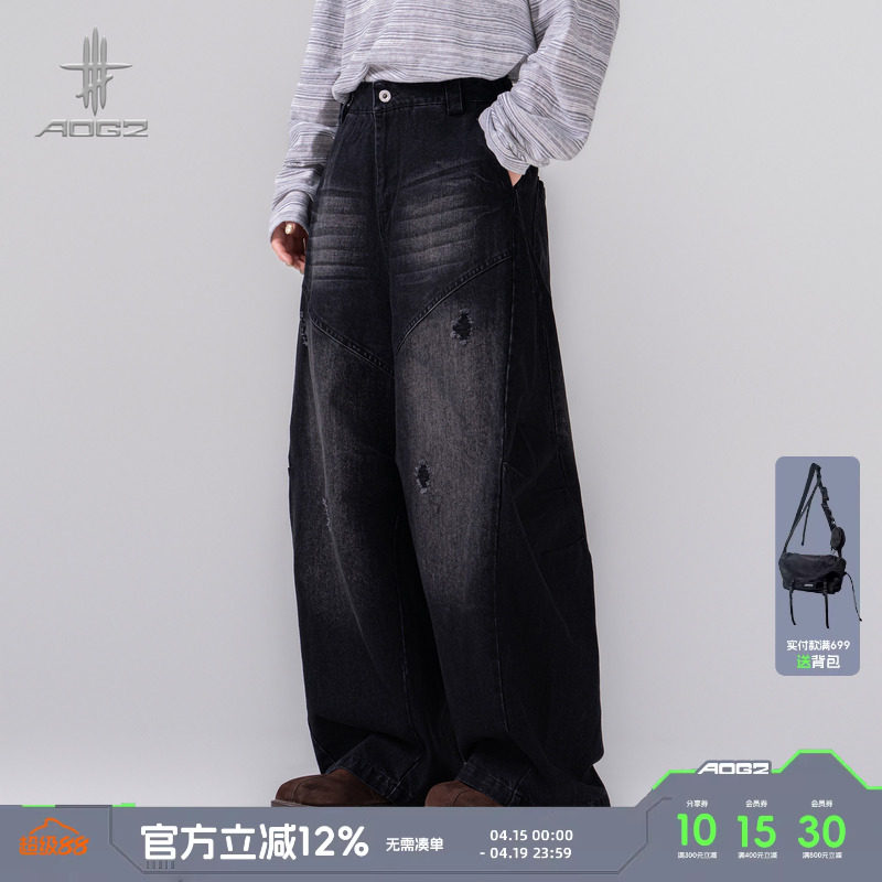 --------------------- AOGZ复古水洗阔腿弯刀牛仔裤男女春季2026新款宽松潮牌设计感长裤 --------------------- --------------------- 【原价】259元 【券后价】189元