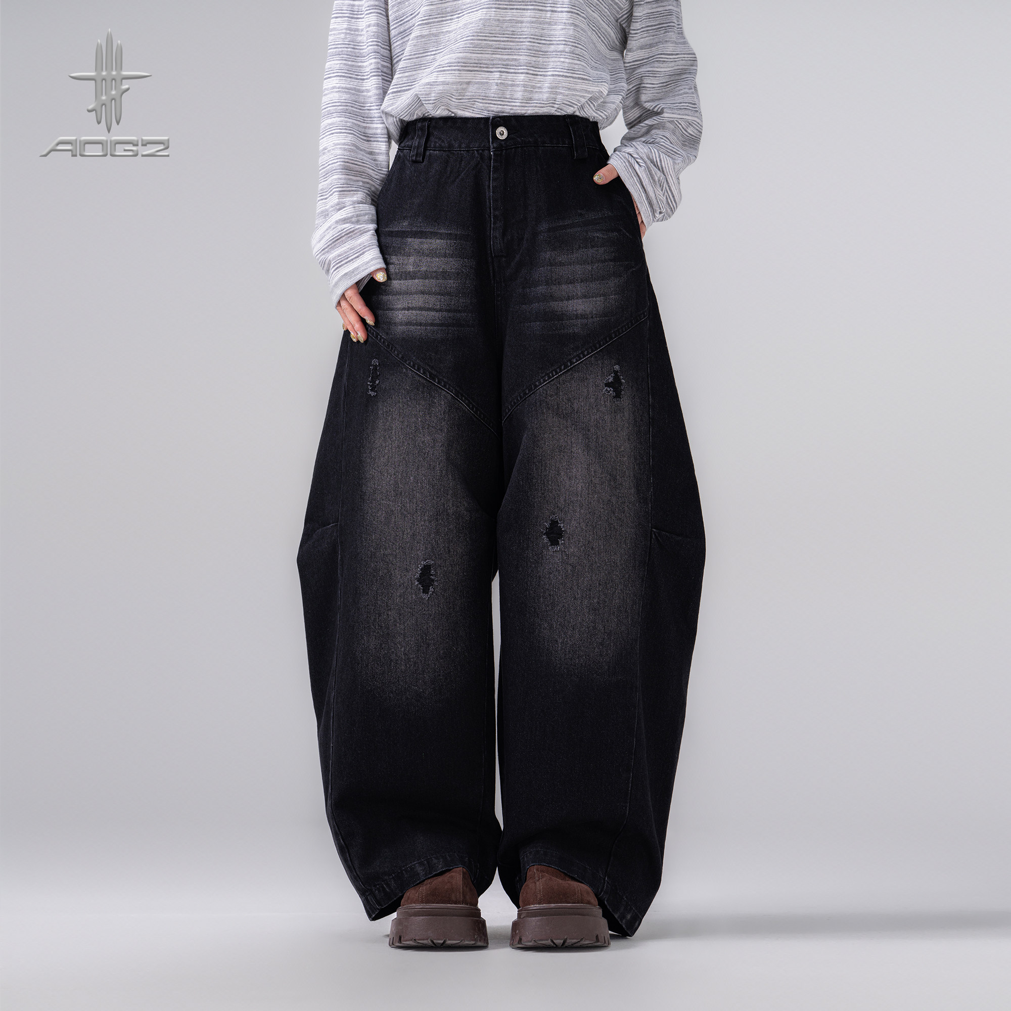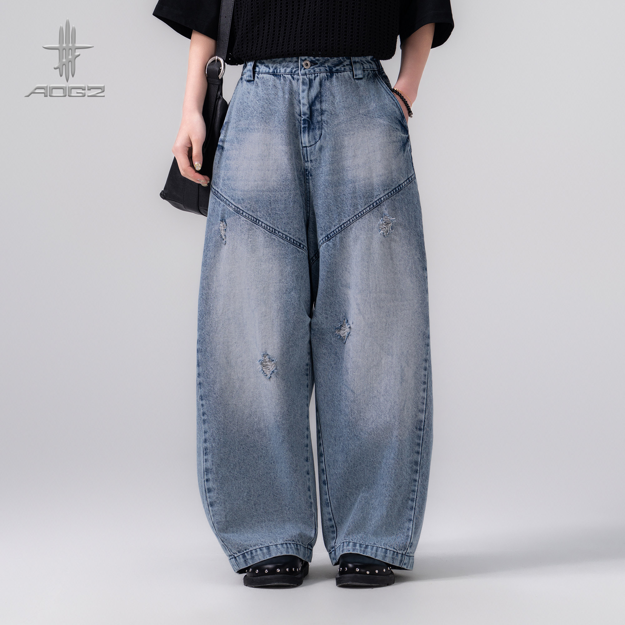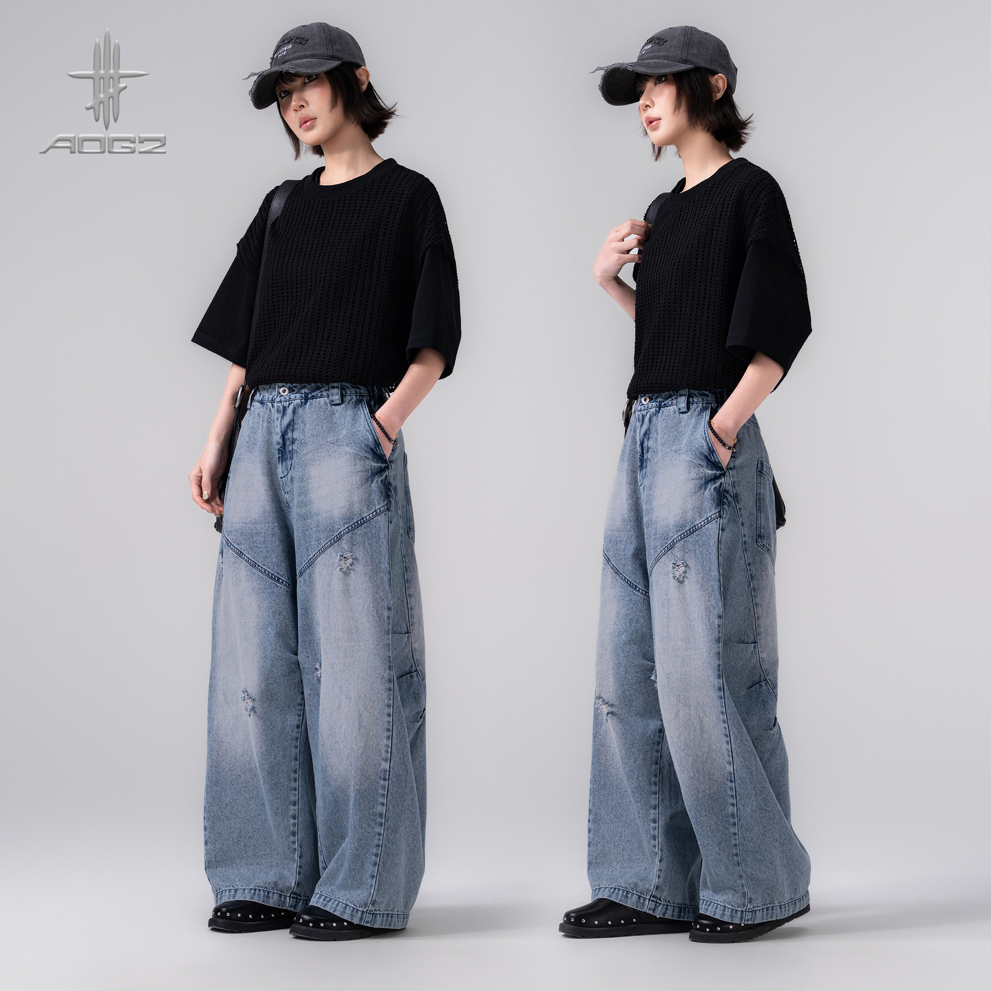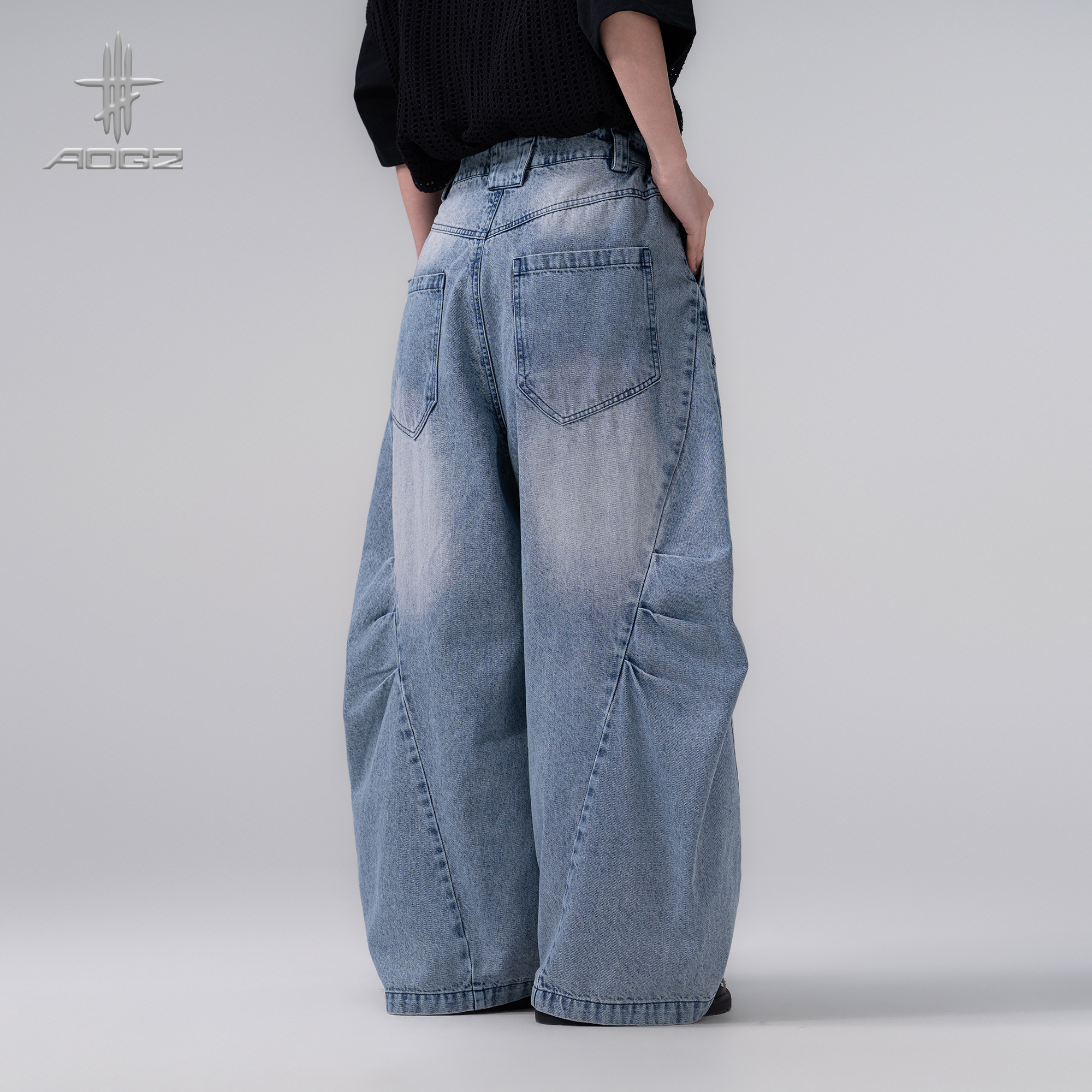 AOGZ复古水洗阔腿弯刀牛仔裤男女春季2026新款宽松潮牌设计感长裤