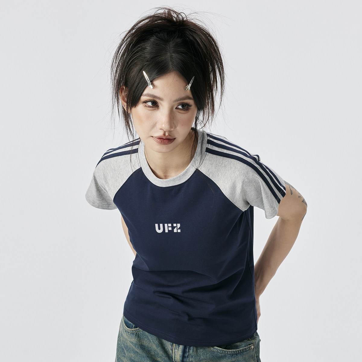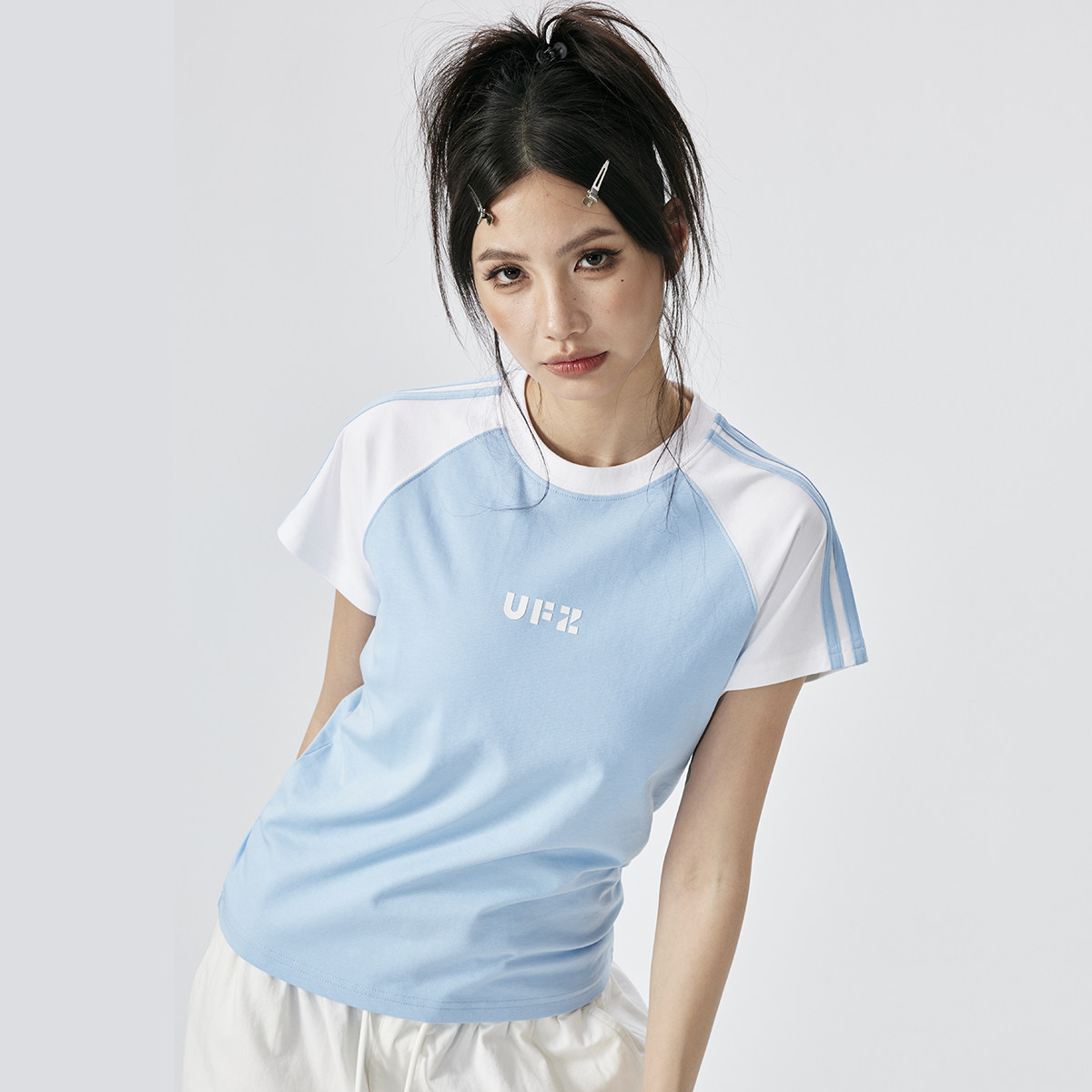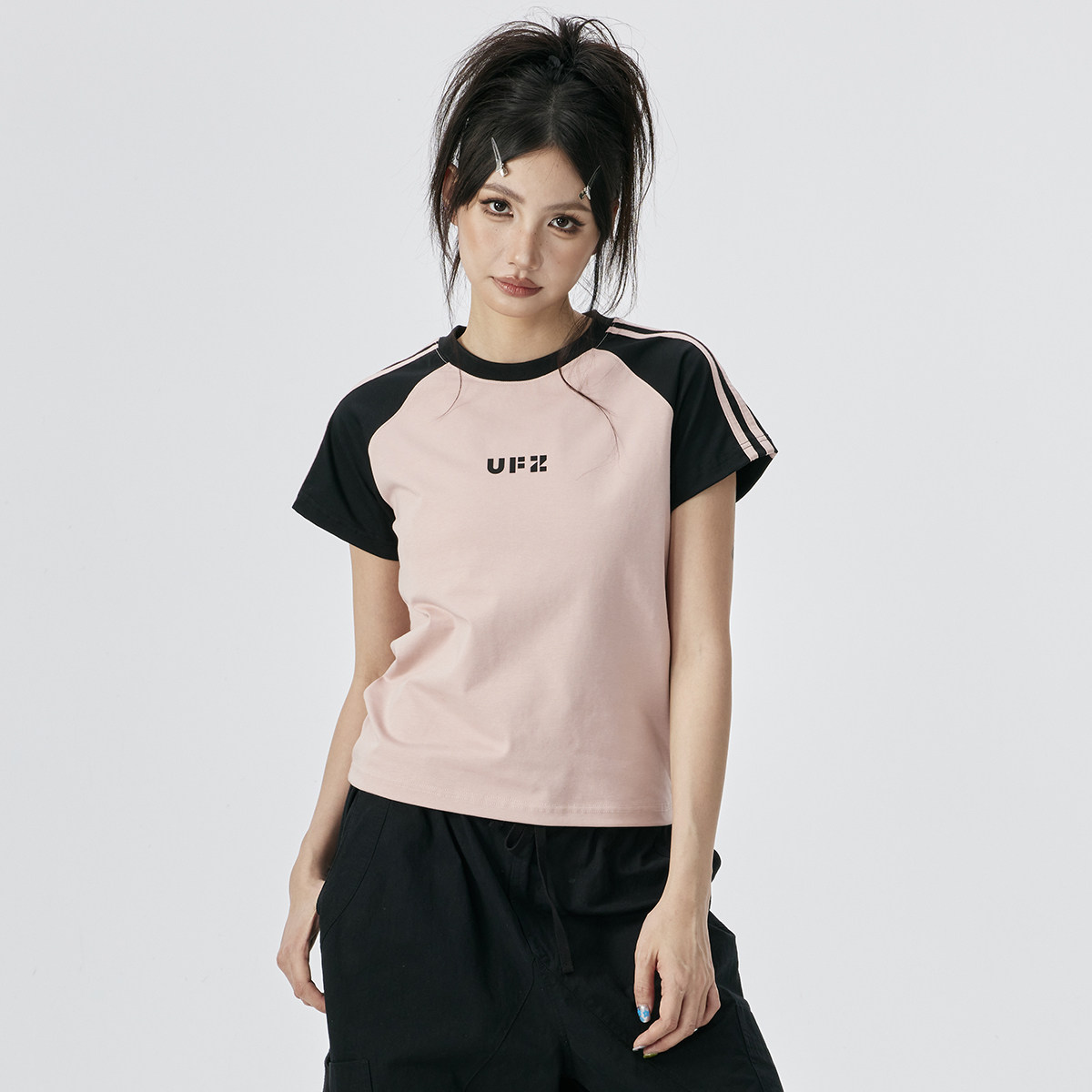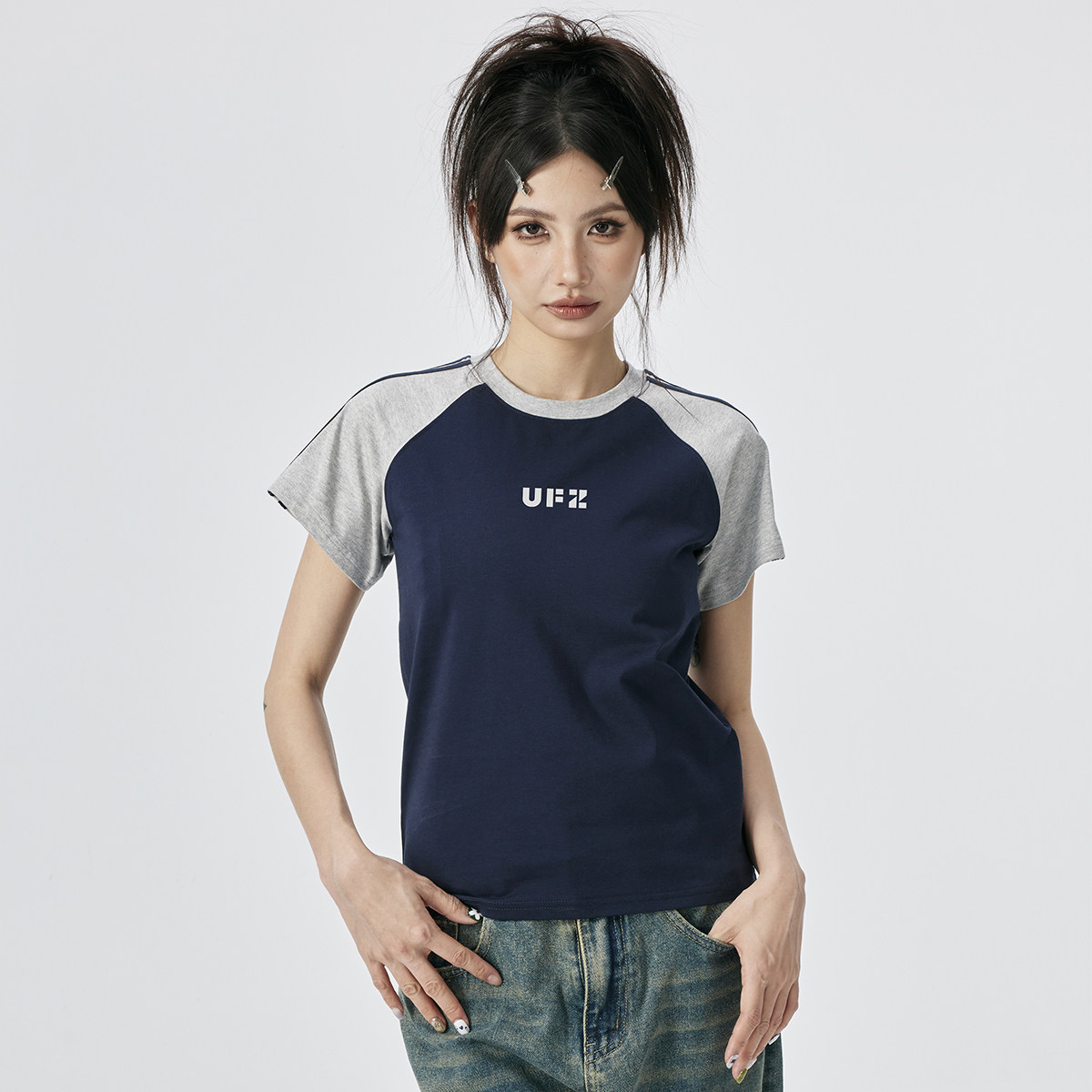 --------------------- UFZ「防晒凉感速干」夏季国潮女生t恤女美式复古撞色潮牌散热短袖 【原售价】999元 【现售价】87.1元 【推荐理由】