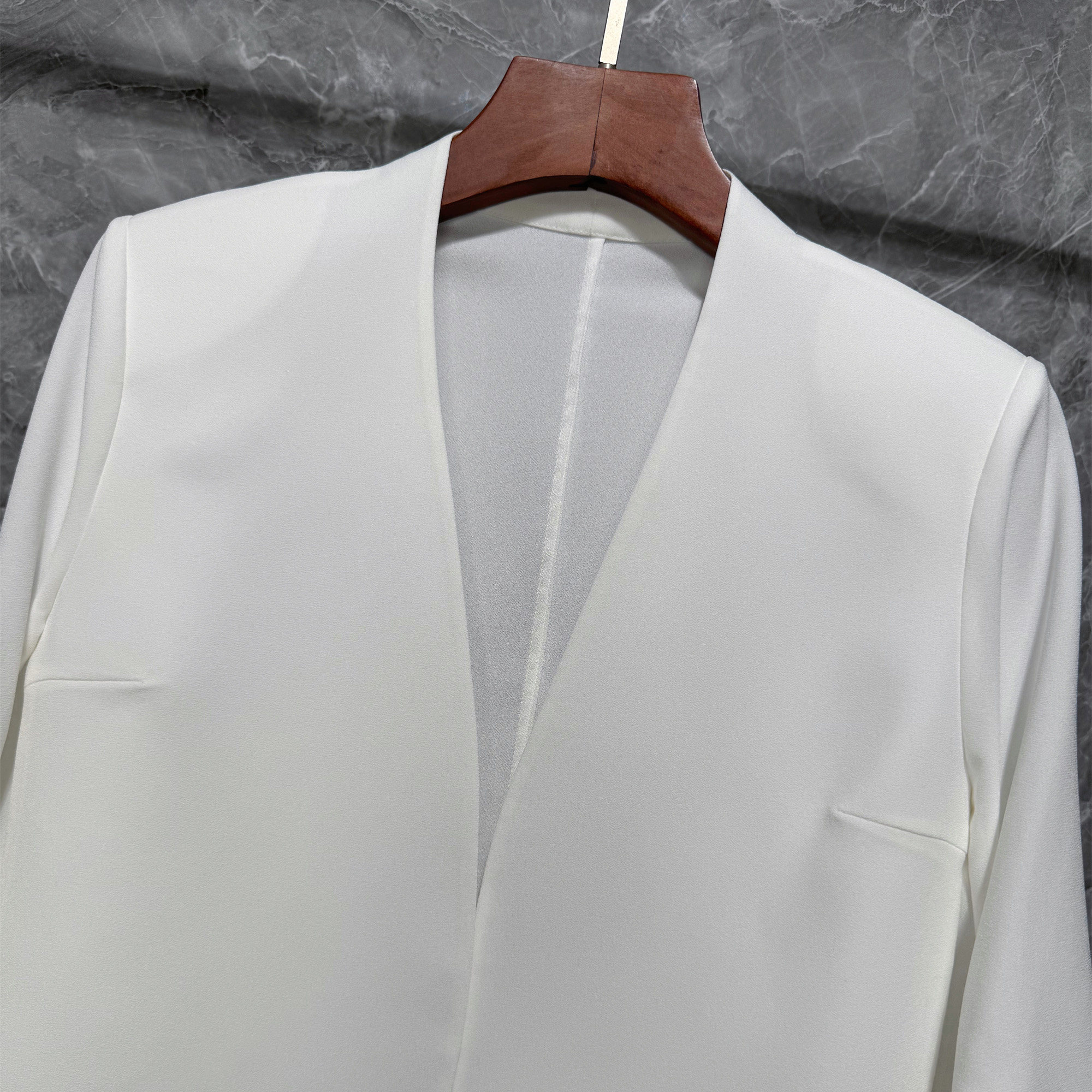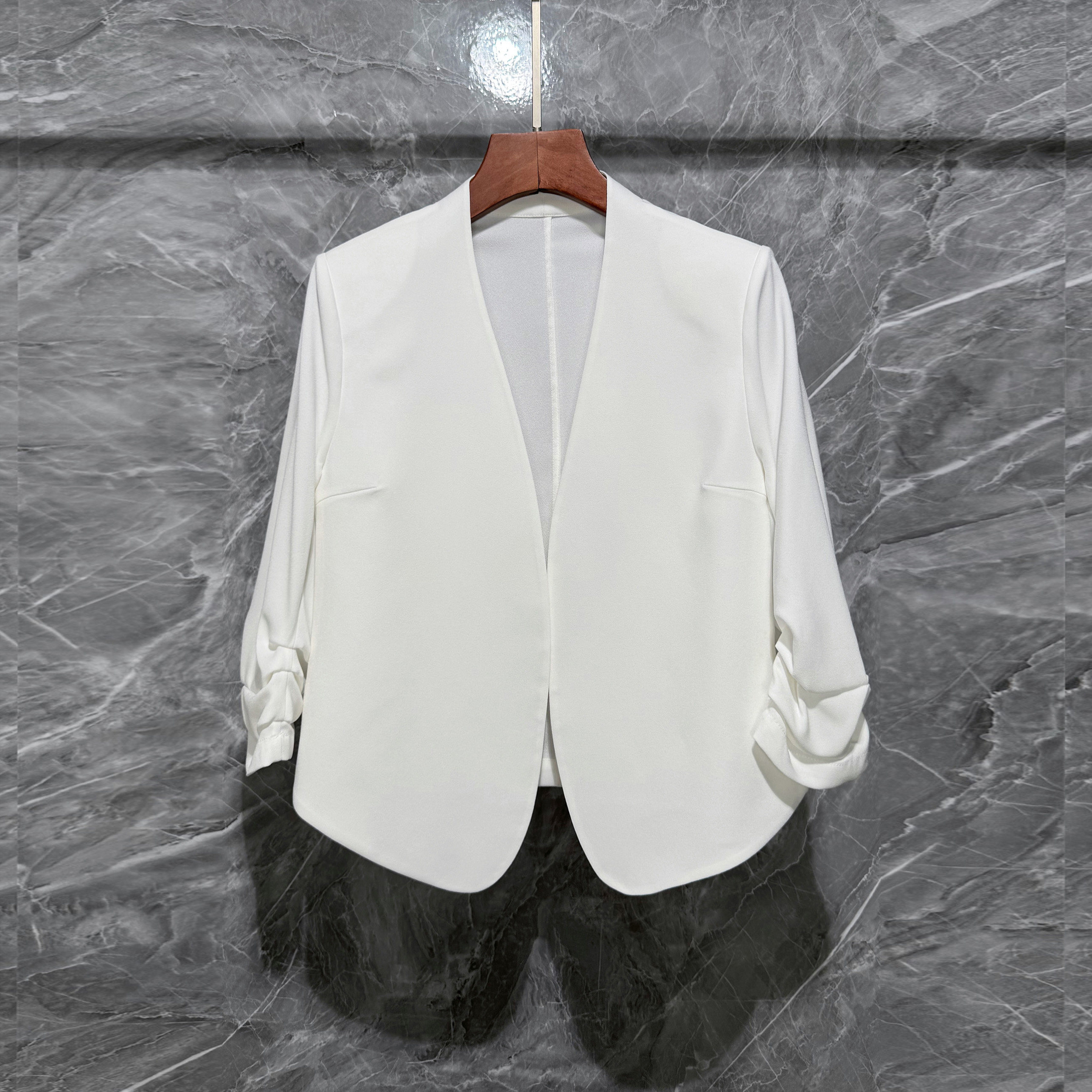 夏季轻奢褶皱袖醋酸麻纱简约百搭小西装OL开衫七分袖气质短款外套
