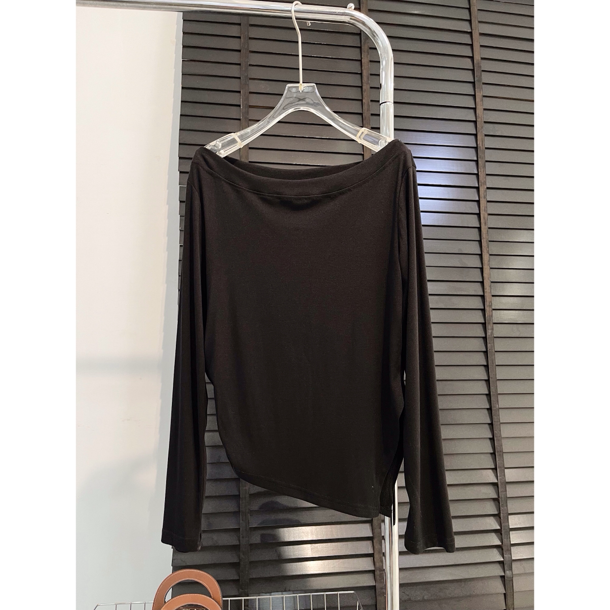 慵懒风不规则一字肩长袖小衫女2025秋季新款宽松显瘦遮肉上衣潮搭