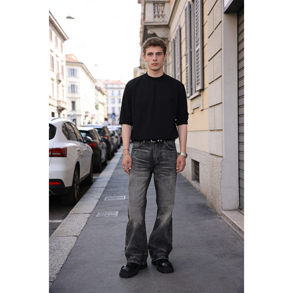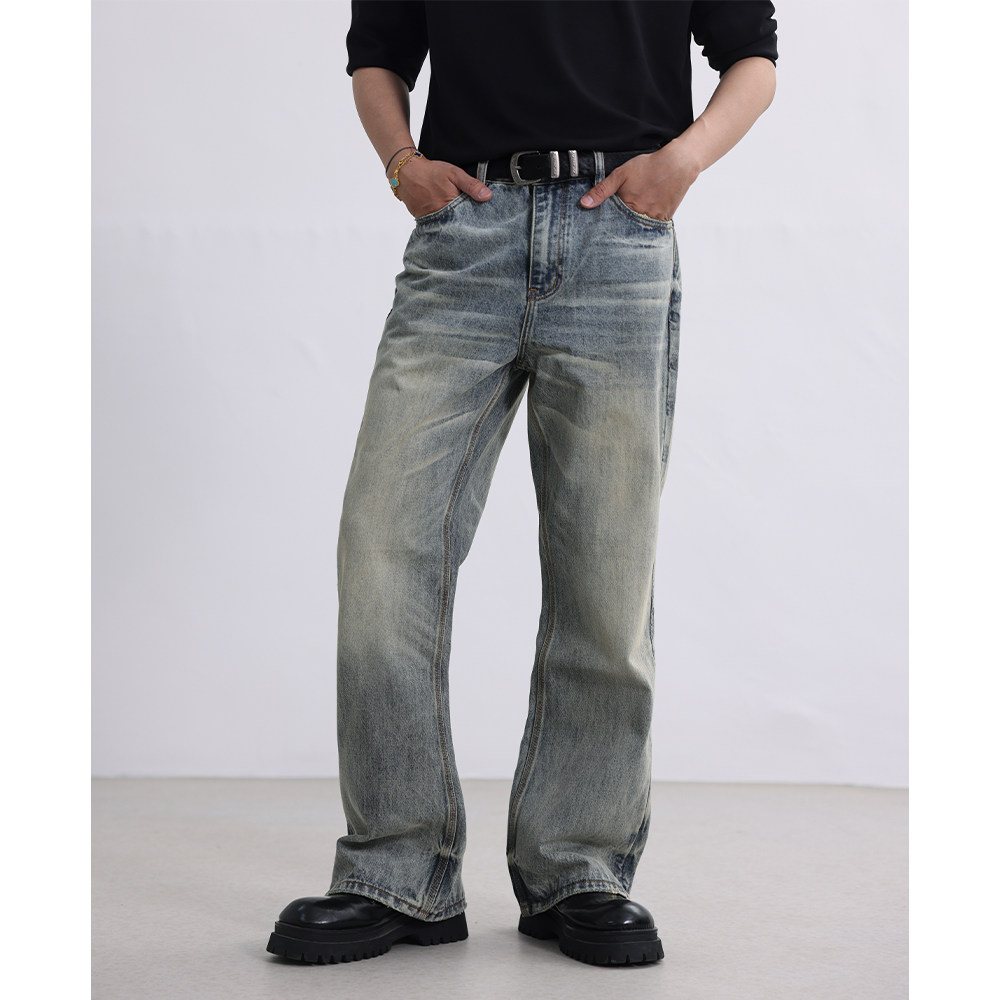 S123虽迟但到 杀死比赛 001天师三色牛646 自然水洗猫须牛仔裤男