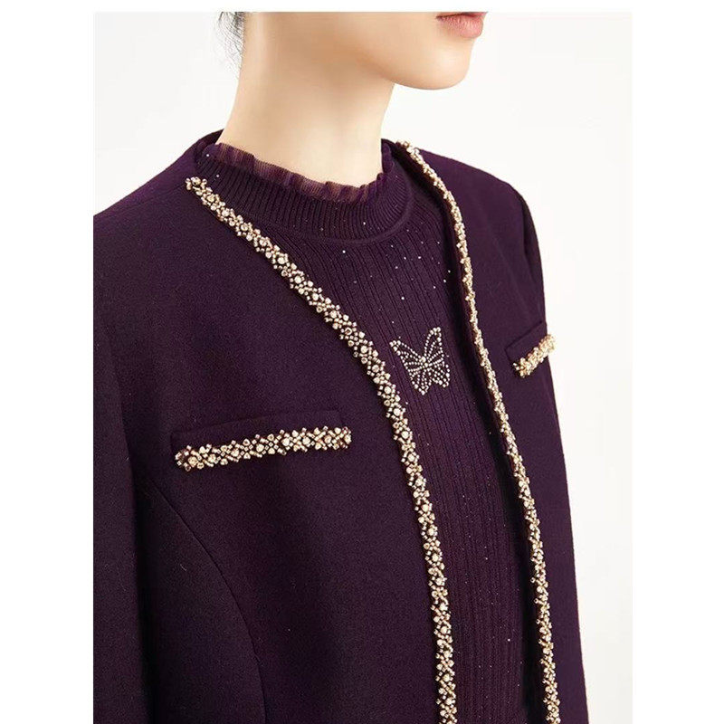 珂家商场同款女装2025秋冬新款时尚钉珠小香风两件套气质连衣裙子