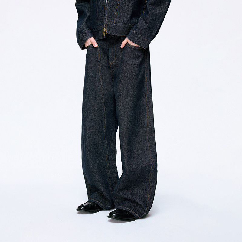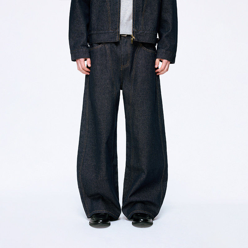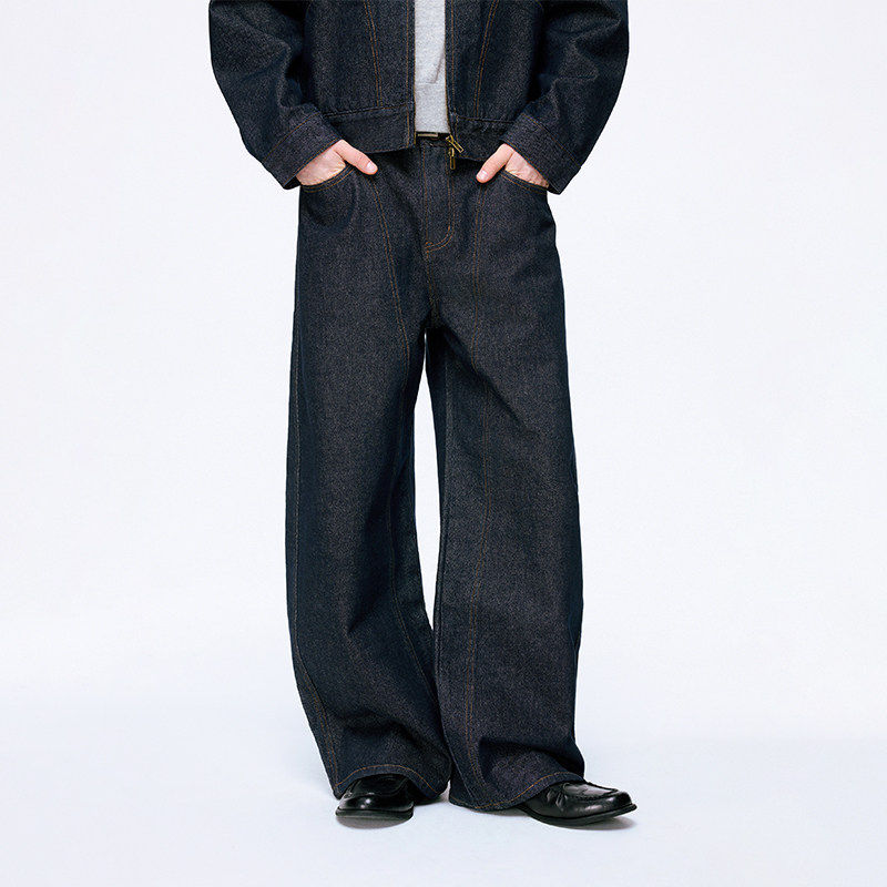 原牛丹宁蓝弯刀休闲长裤复古宽松牛仔裤支线Essence by BONELESS