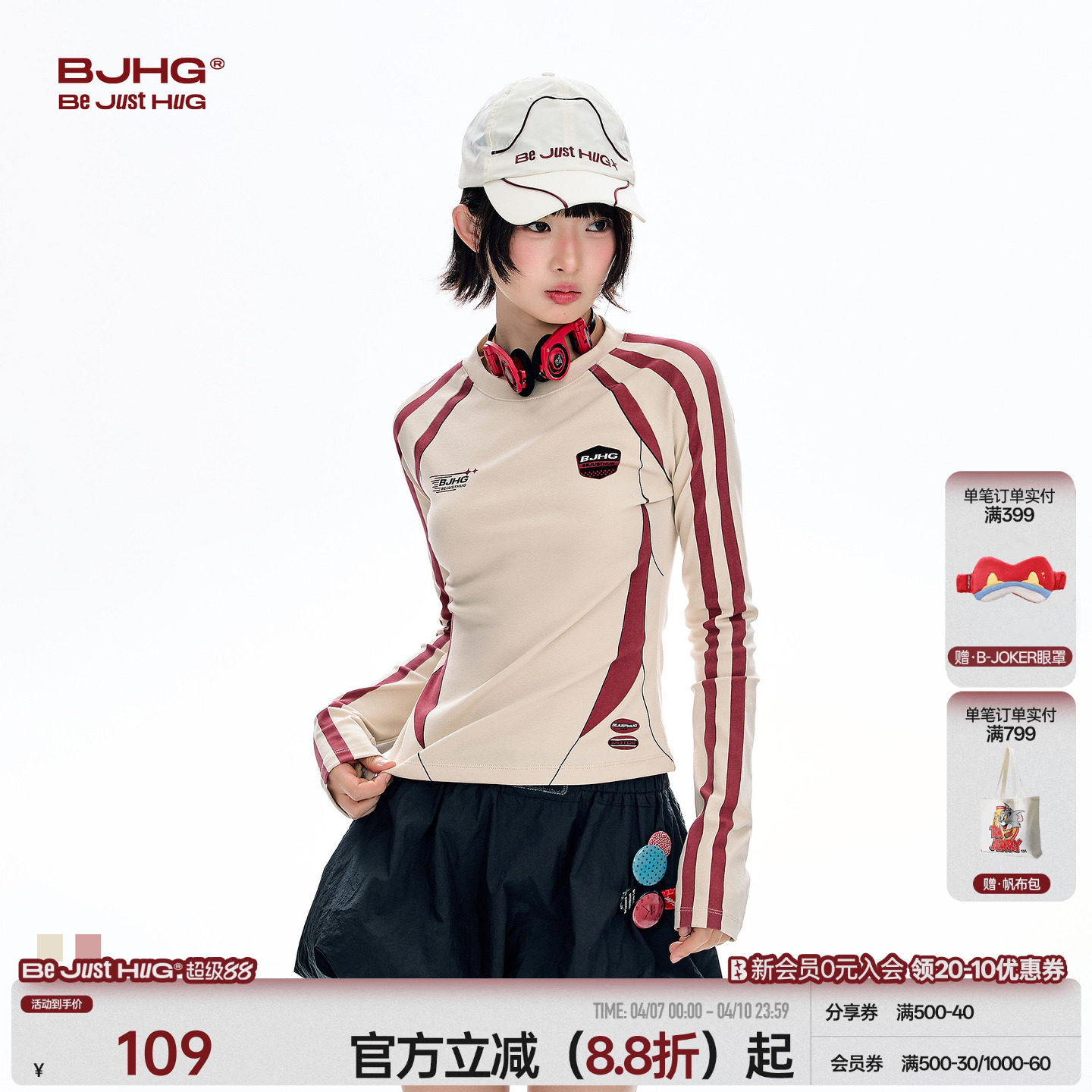 --------------------- BJHG不计后果复古美式撞色长袖T恤女春季潮牌机能风修身显瘦上衣 【原售价】129元 【现售价】109元 【推荐理由】