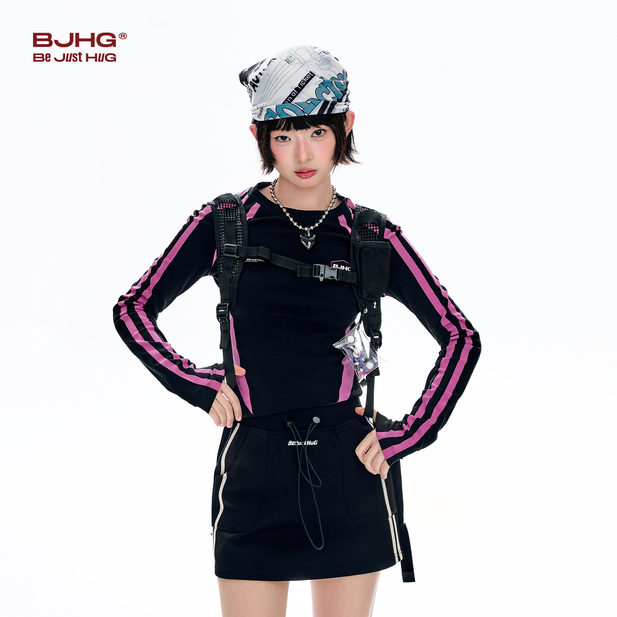 BJHG不计后果复古美式撞色长袖T恤女春季潮牌机能风修身显瘦上衣
