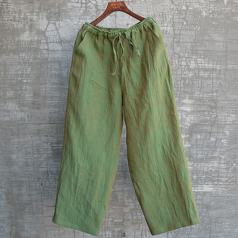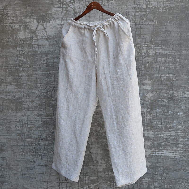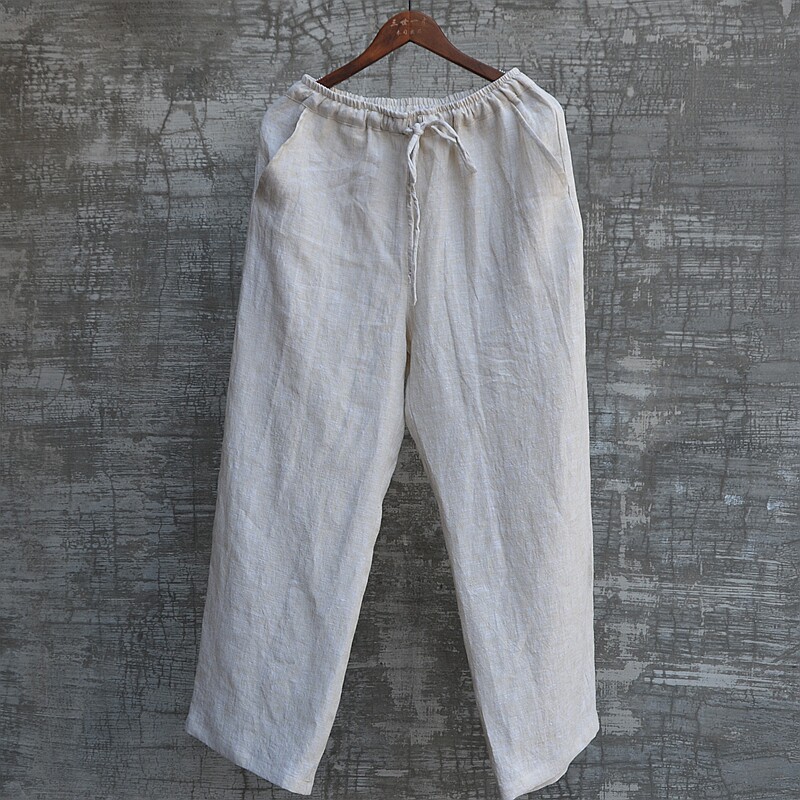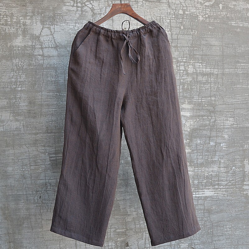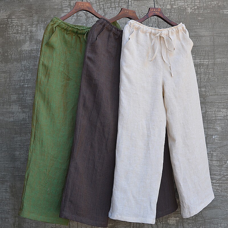 淘宝女装原创休闲直筒裤长裤亚麻拖地甩裤宽松大码百搭文艺复古松紧腰