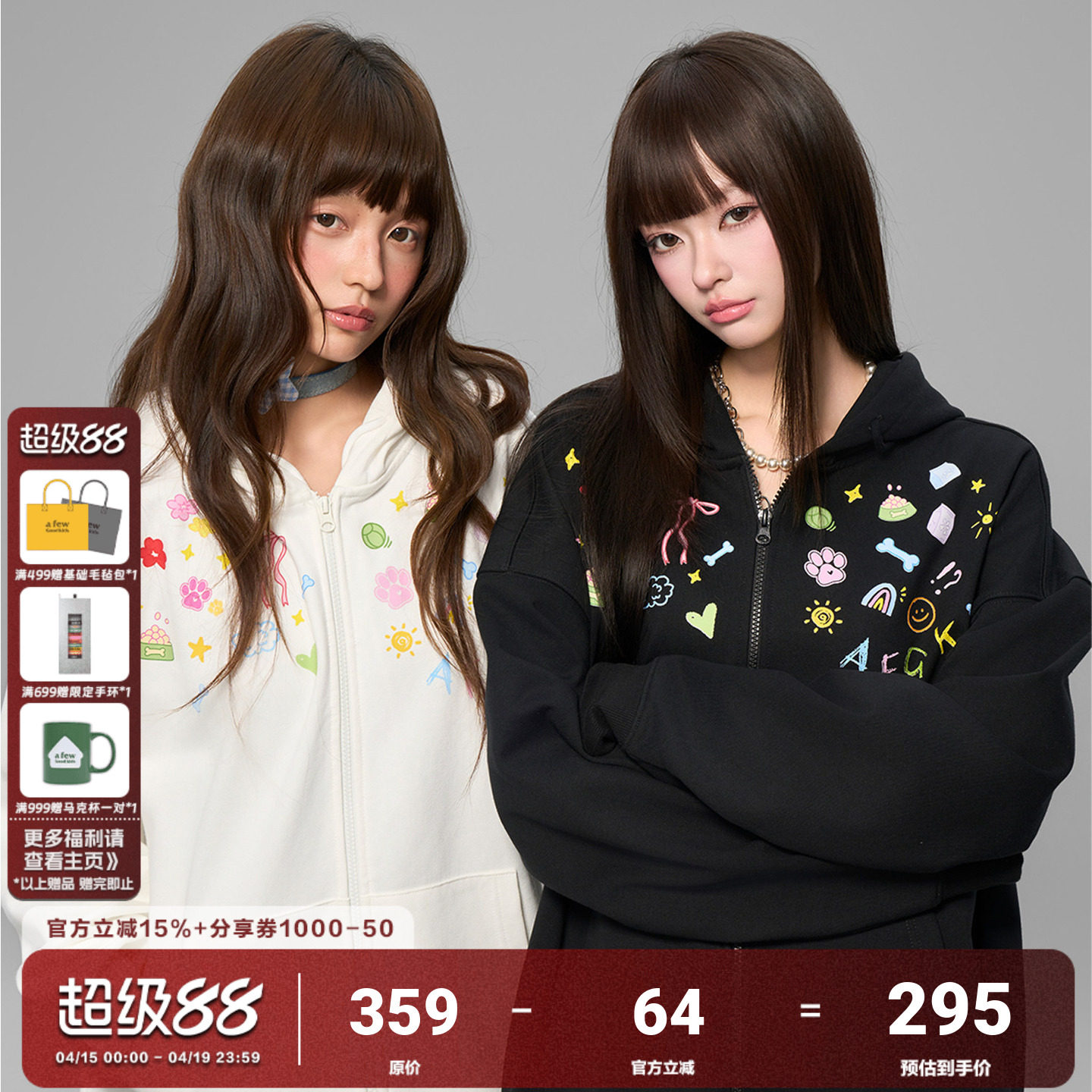 --------------------- AFGK25FW元素小狗开衫连帽卫衣男女春秋美式休闲情侣外套国潮帽衫 --------------------- --------------------- 【原价】359元 【券后价】285元