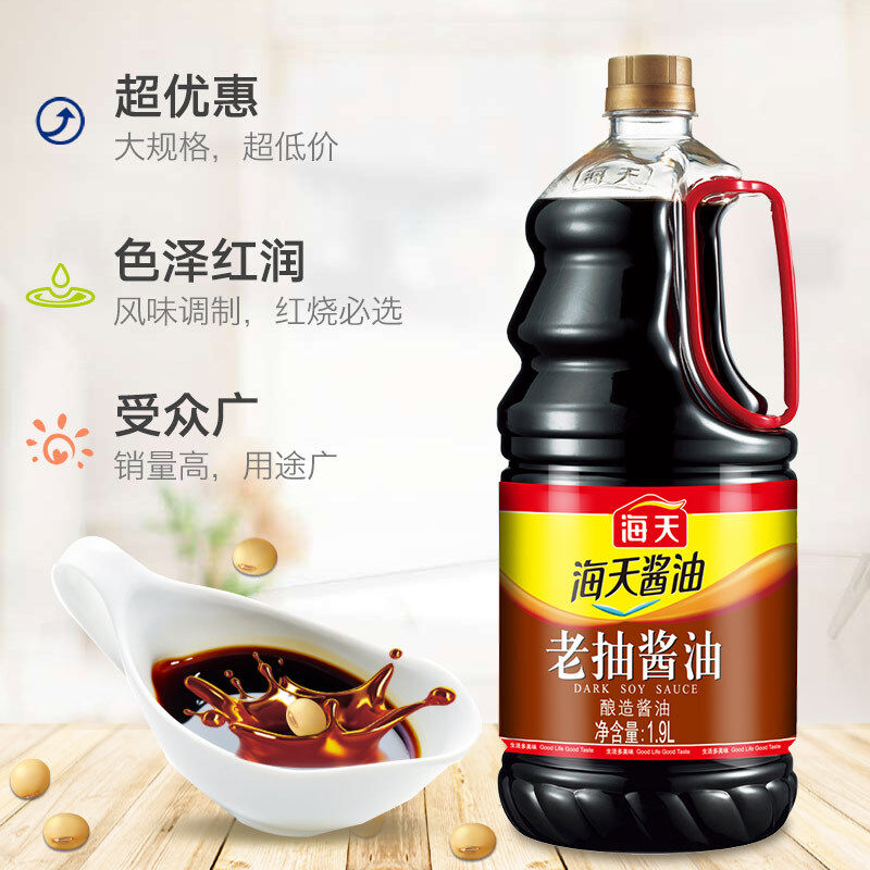 --------------------- 海天老抽酱油1.9L*6瓶红烧肉焖炖调味料红烧上色酿造酱油商用整箱 【原售价】13.5元 【现售价】12.15元 【推荐理由】