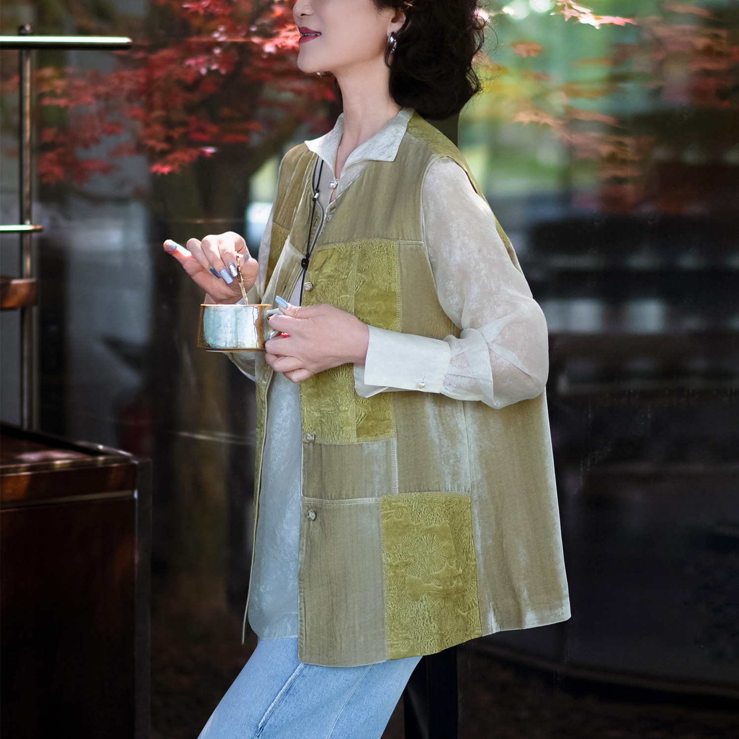 --------------------- 一非空间春夏桑蚕丝多用背心马甲古风国潮拼接气质时尚宽松显瘦女 【原售价】1122元 【现售价】987元 【推荐理由】