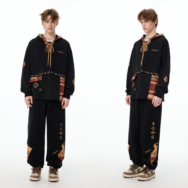 LAMLICKA民族风国潮休闲裤子宽松bf慵懒风束脚长裤重磅百搭直筒裤