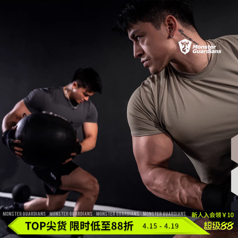 淘宝Monster Guardians原纱速干透气网眼防晒健身训练运动压缩短袖男