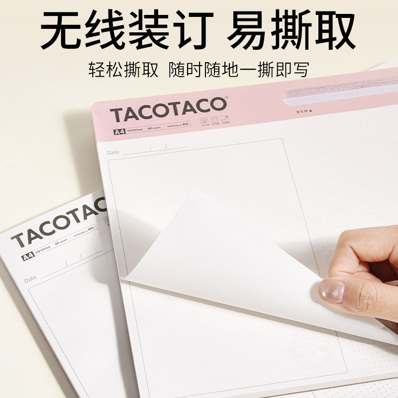 TacoTaco脑洞记录本计划本随时有idea随手记录带笔槽A4可撕便签本工作学习月周计划表横线方格空白大笔记本子