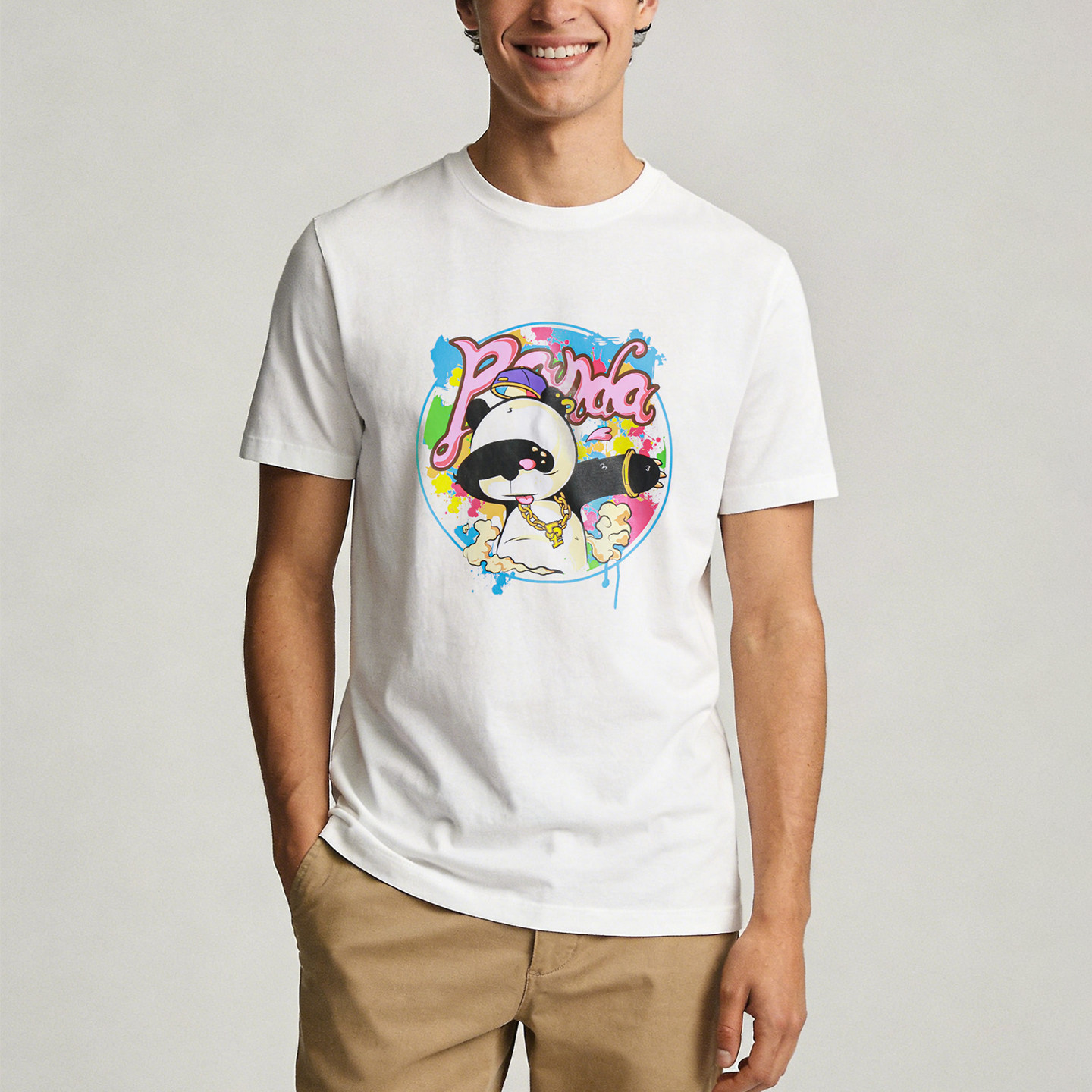 淘宝路上海街头熊猫338印花正肩休闲纯棉国潮创意短袖女t恤男情侣