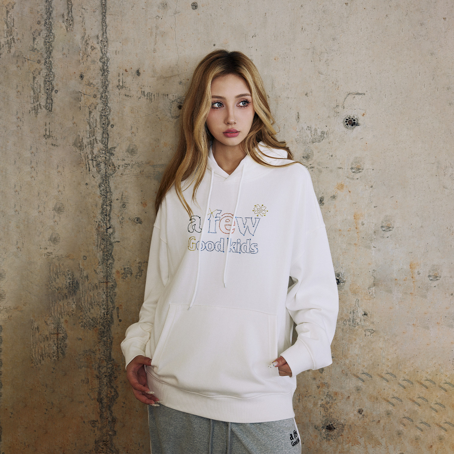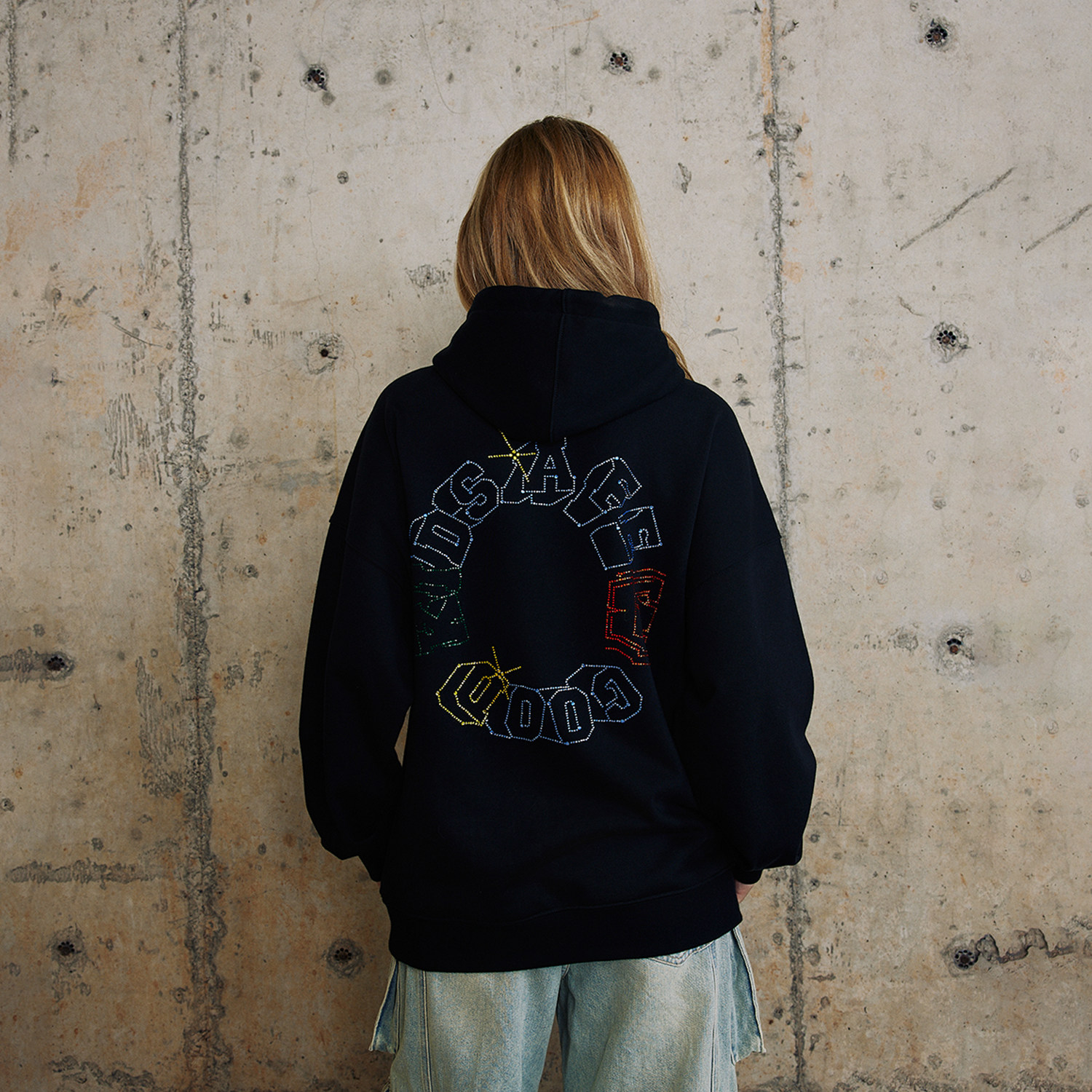AFGK24FW美式霓虹星星烫钻连帽卫衣国潮环形LOGO春秋男女情侣帽衫