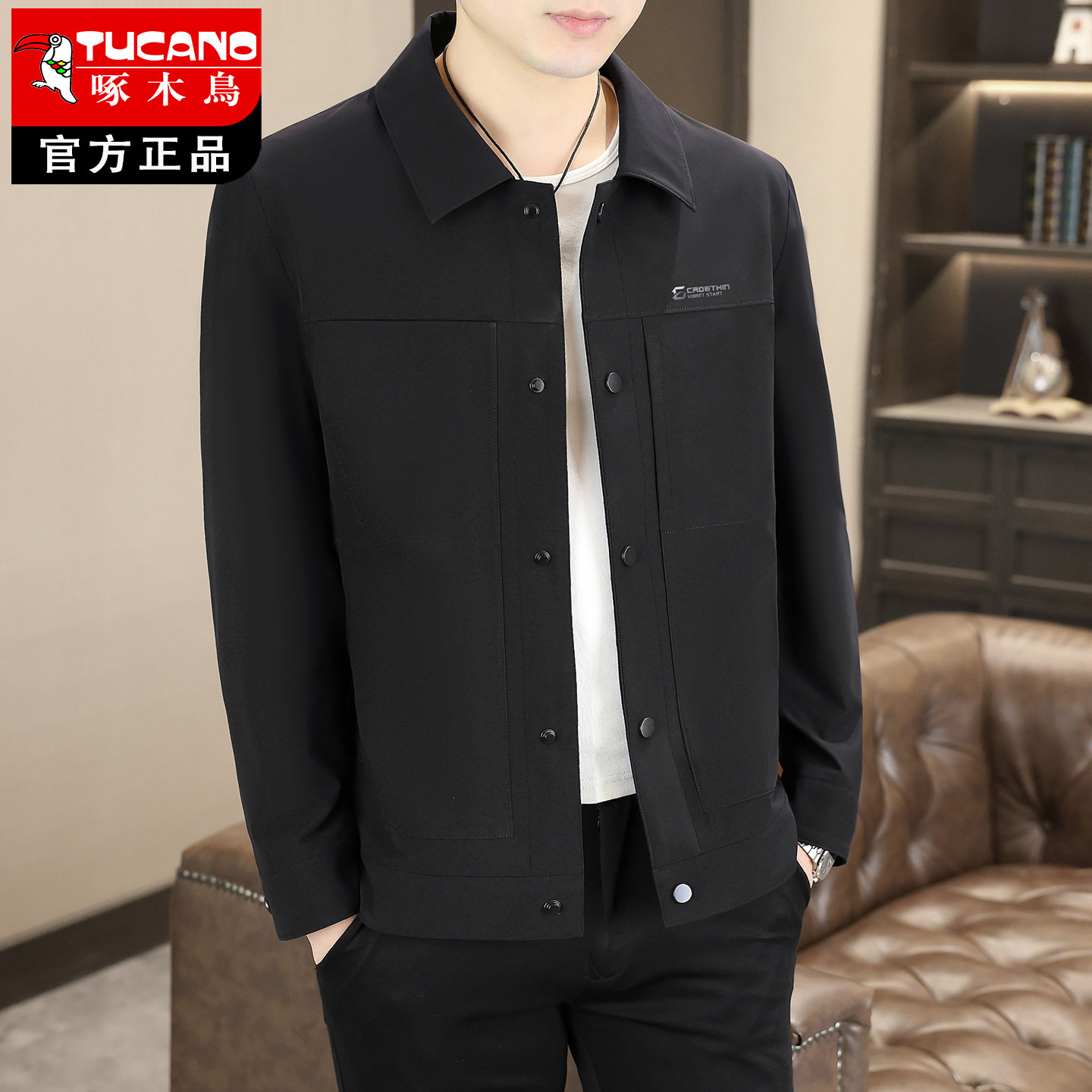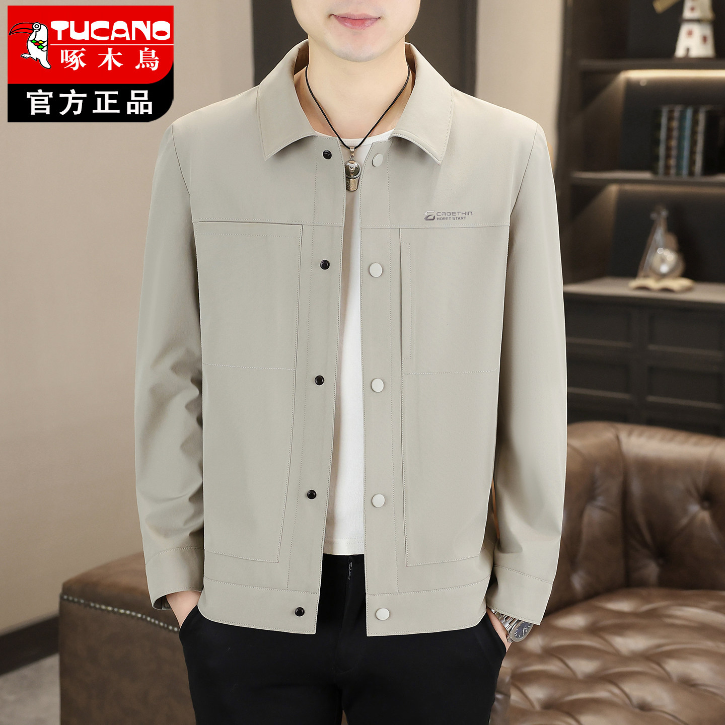 啄木鸟翻领夹克男2026新款休闲商务男士外套中青年春季薄款男装