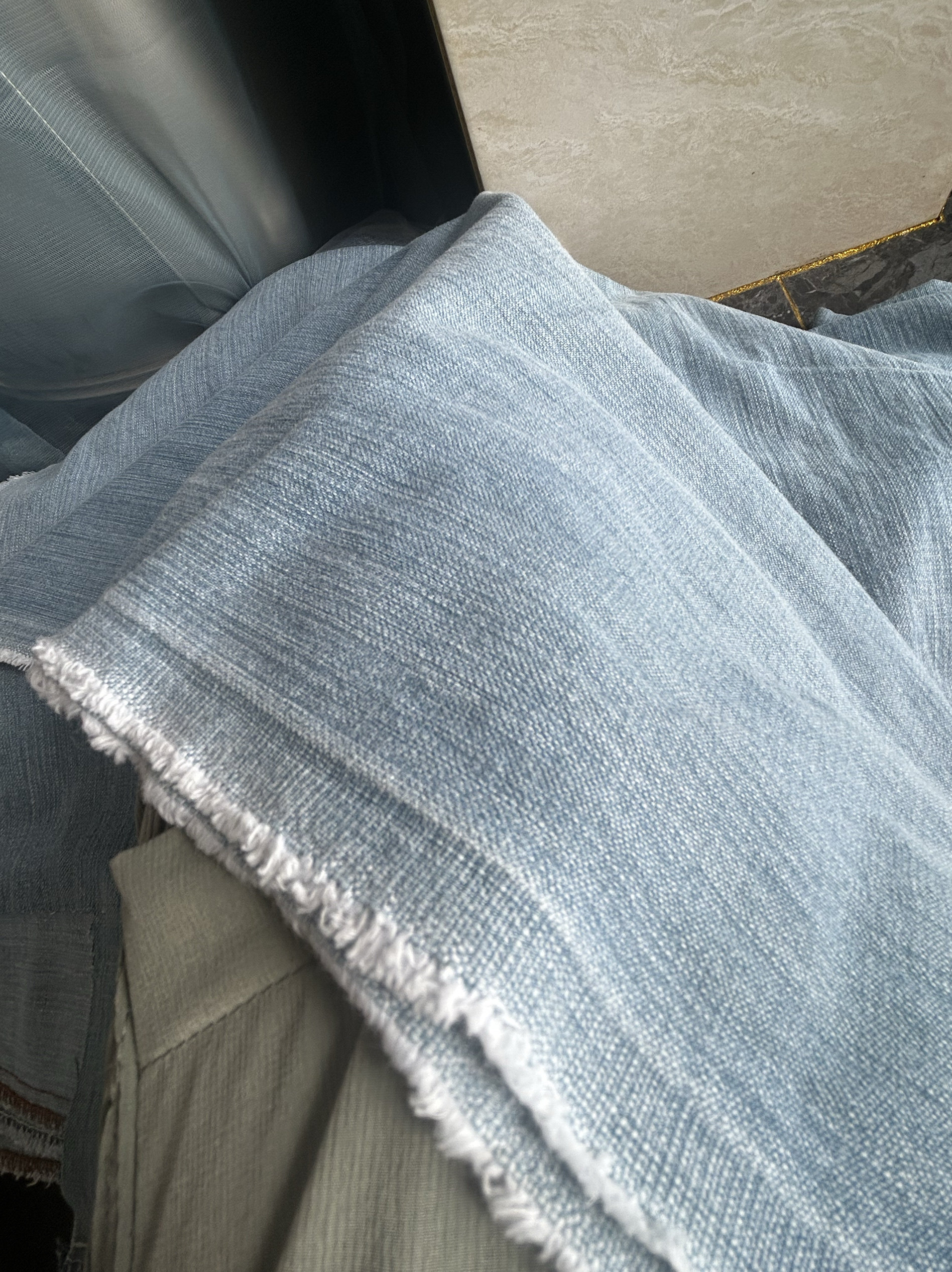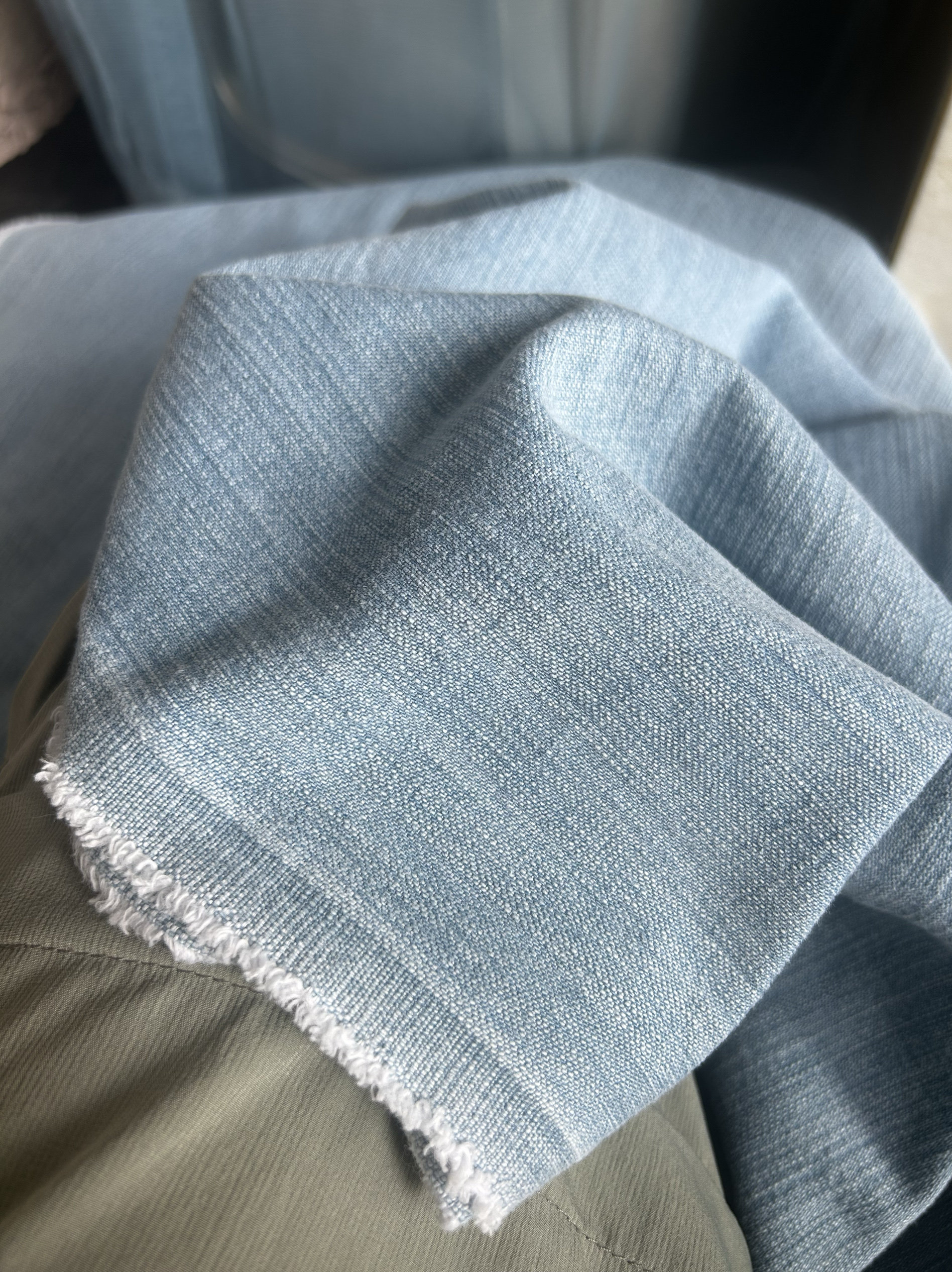 日本进口牛仔布料水洗丹宁软纯棉高档端大品牌意大利土耳其绿蓝色