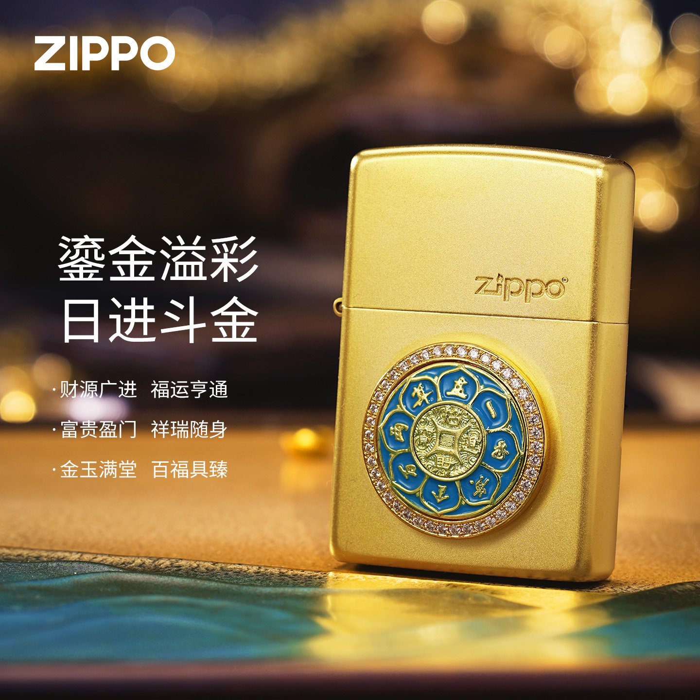 Zippo打火机招财进宝贴章官方正品防风煤油送男朋友生日礼物经典