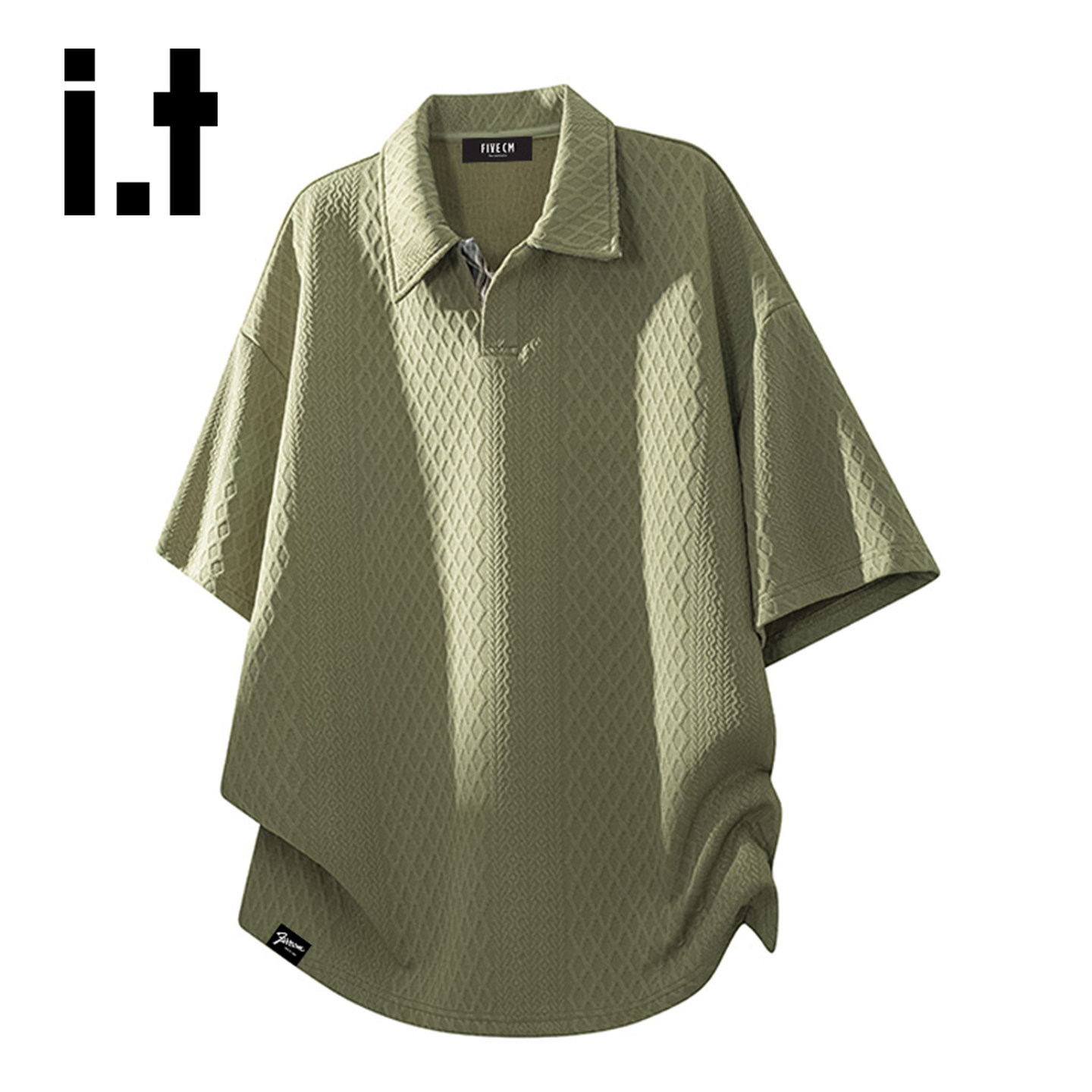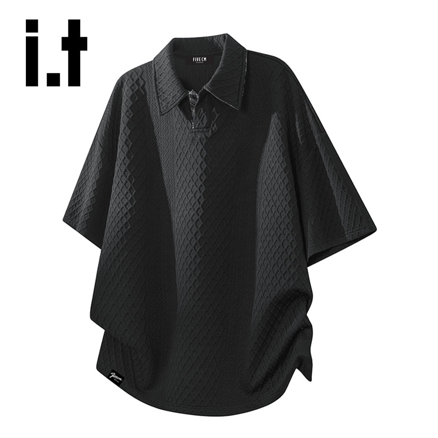 it :5cm/FIVECM格子翻领短袖t恤男士夏季休闲肌理感宽松半袖YQ