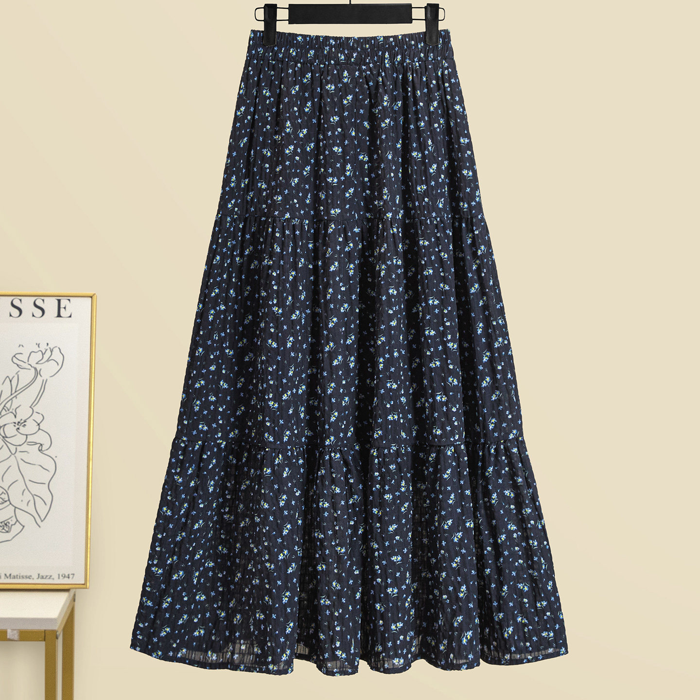 她池松紧腰半身裙2026夏装新款女装中长款复古碎花宽松款A字裙