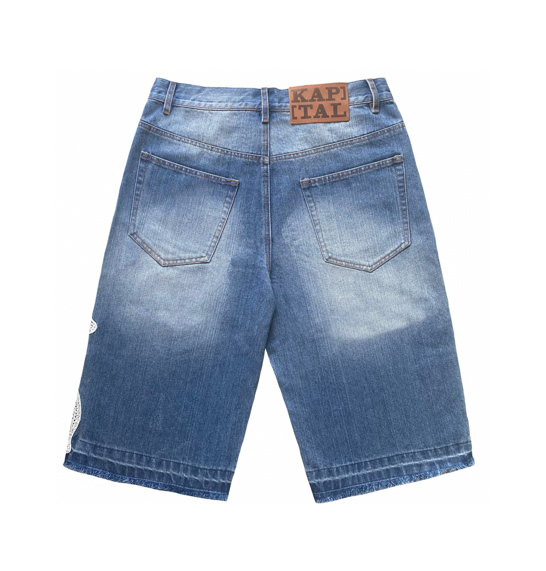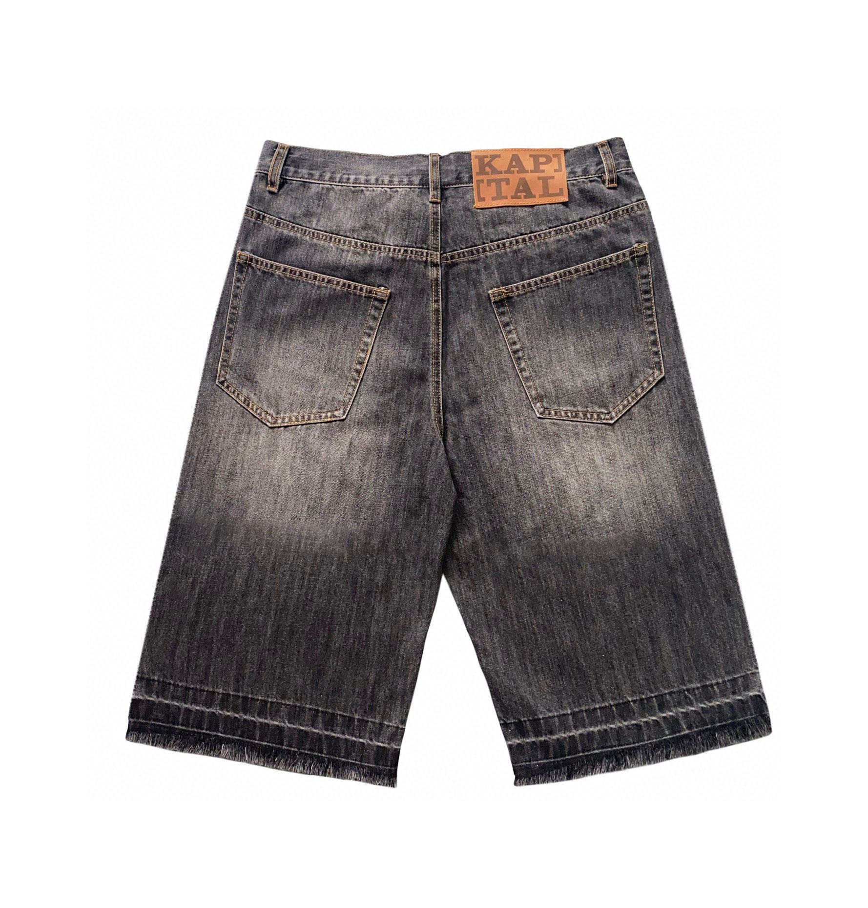 KAPITAL平田和宏 宽松休闲裤刺绣骨头洗水做旧毛边牛仔短裤男女款