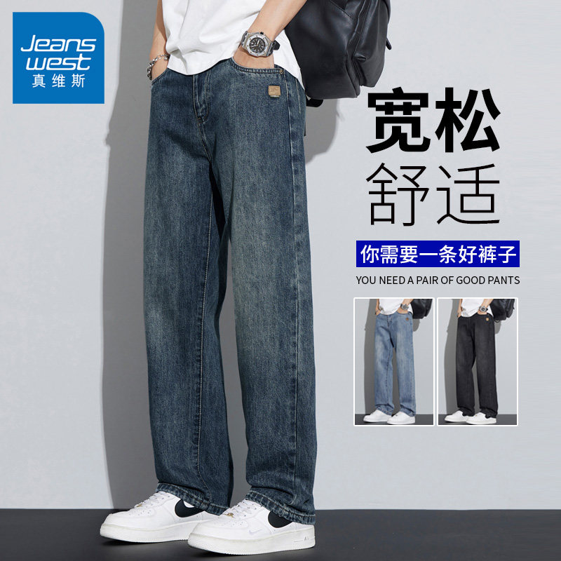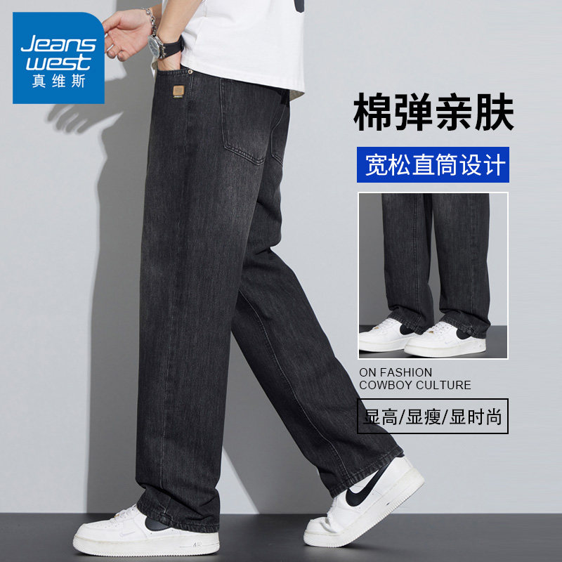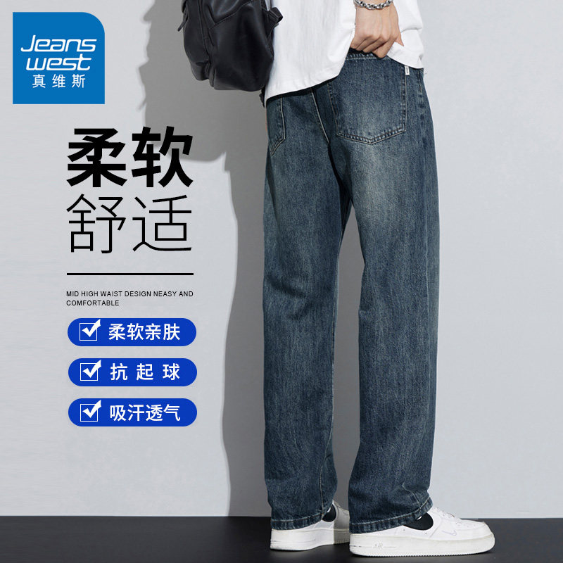 真维斯天丝牛仔裤男士夏季薄款2026新款长裤直筒宽松美式男生九分