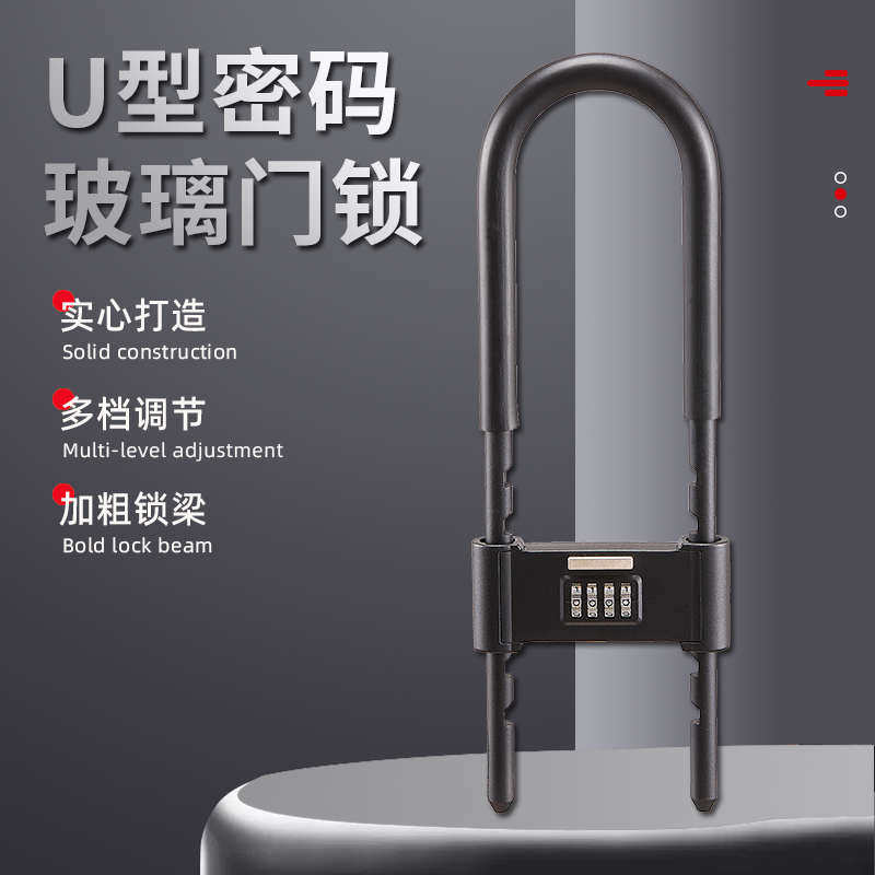 u型密码锁玻璃门锁插锁u行大锁叉室外办公双防盗门面把手锁u形锁