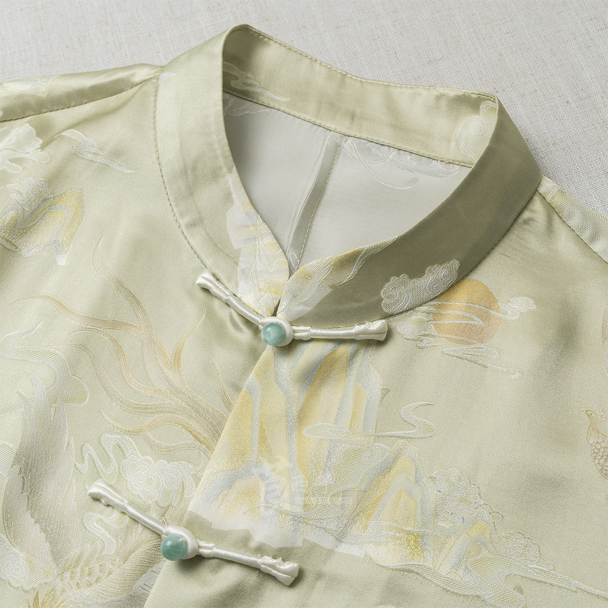 --------------------- 【清】莨西子新中式国风桑蚕真丝长袖衬衫女立领一字盘扣国潮上衣 【原售价】479元 【现售价】479元 【推荐理由】