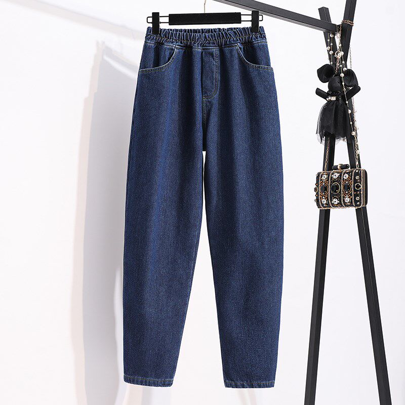 --------------------- 大码加绒哈伦牛仔裤女冬季2024年新款胖mm显瘦百搭松紧腰老爹裤子 【原售价】125元 【现售价】125元 【推荐理由】