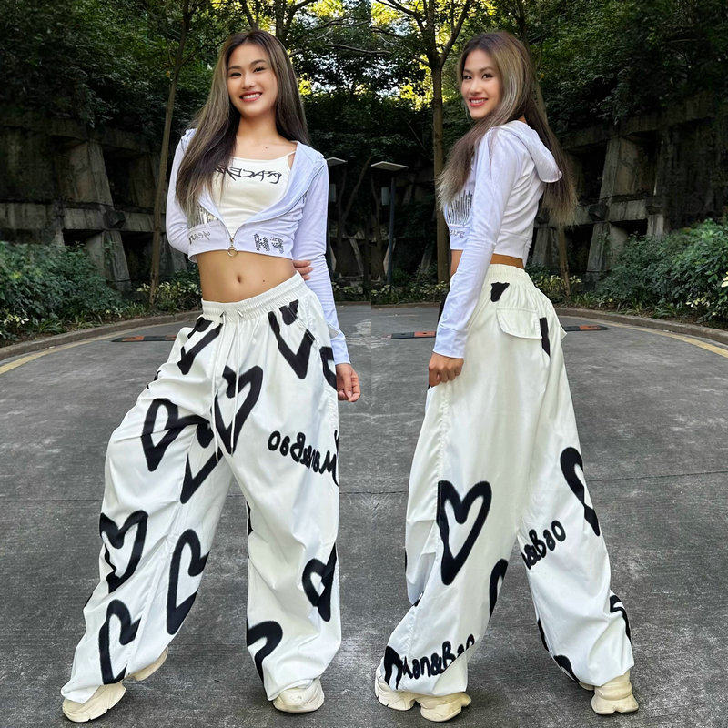 美式辣妹高街宽松工装裤女加长阔腿裤街舞潮牌爵士jazz跳舞服装薄