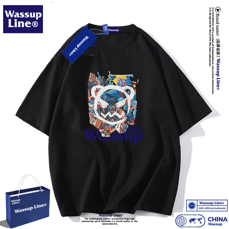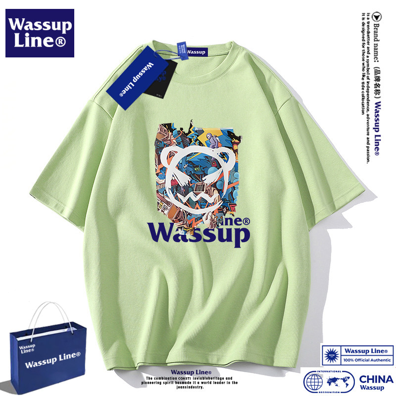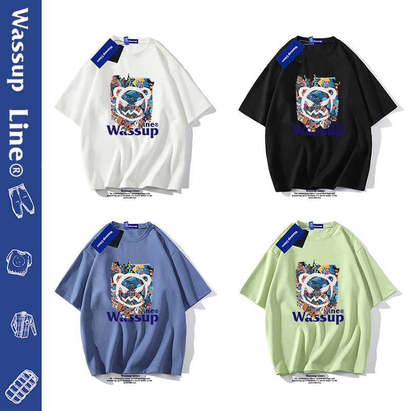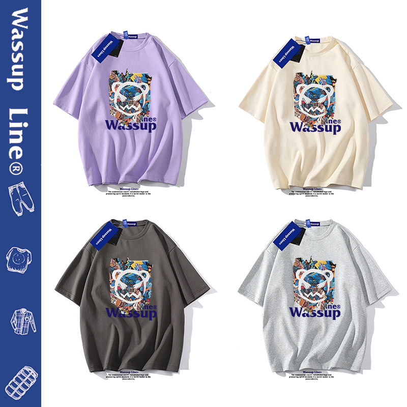 --------------------- WASSUP Line潮牌纯棉短袖t恤男宽松重磅半袖情侣5分袖打底衫夏季 【原售价】198元 【现售价】51元 【推荐理由】