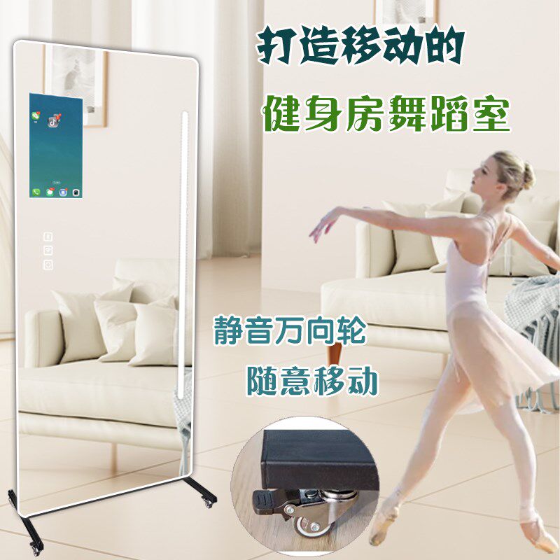 智能舞蹈镜可移动超大镜子带轮子家用全身落地镜瑜伽室健身跳舞镜