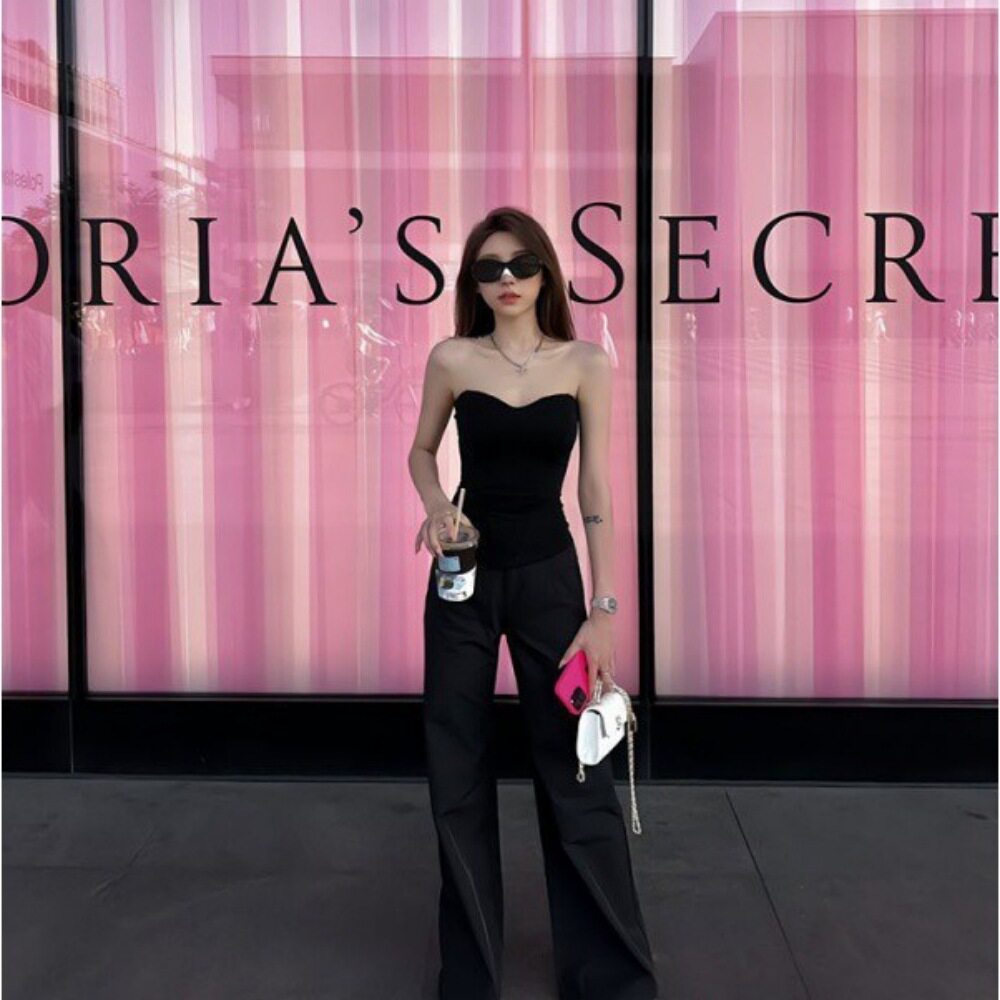 淘宝性感黑色鱼骨抹胸上衣女夏季爆款立体设计感外穿修身显瘦裹胸背心