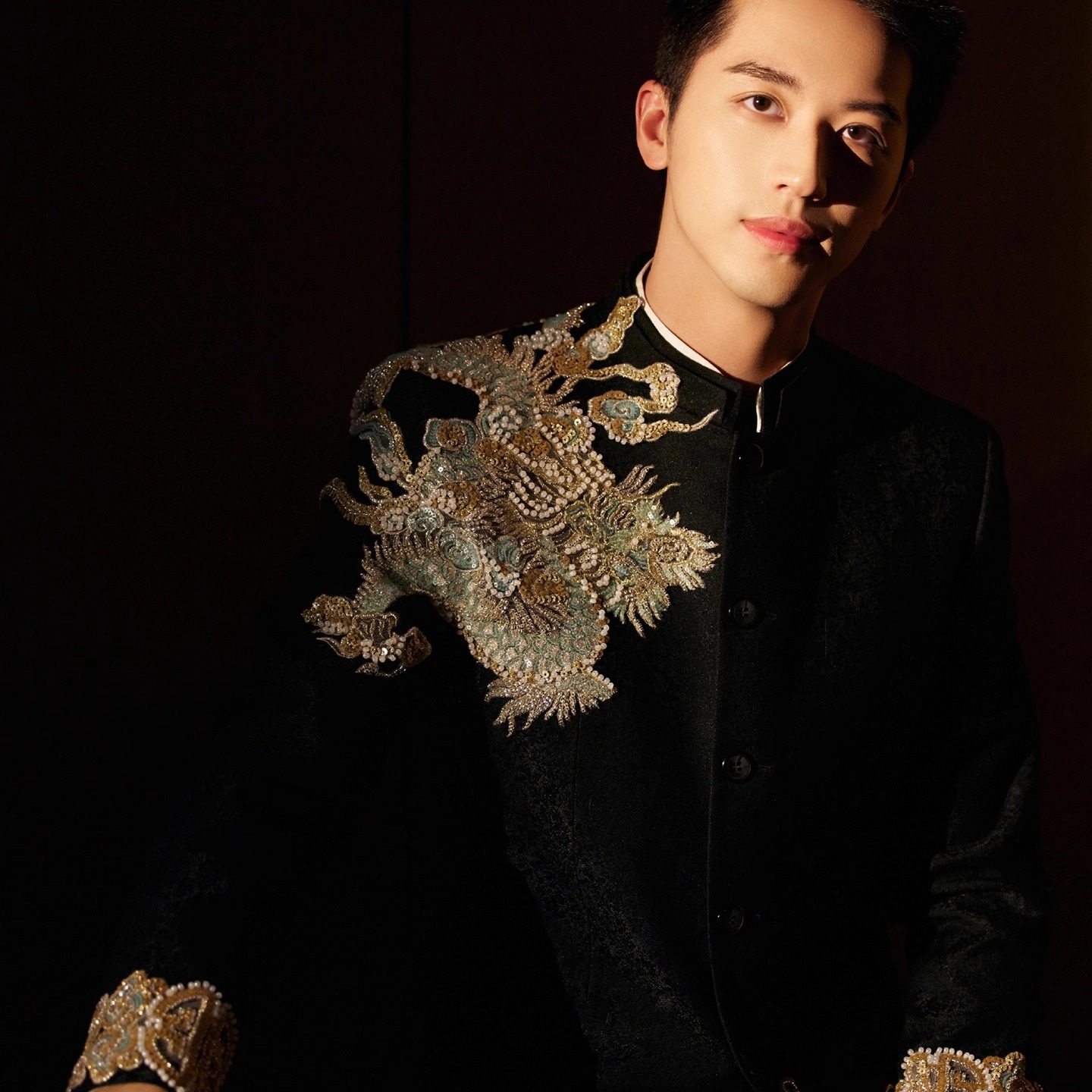 许魏洲明星同款高级感龙纹刺绣中山装男士黑色改良西服明星同款潮