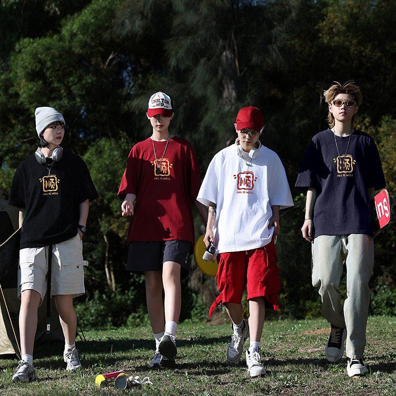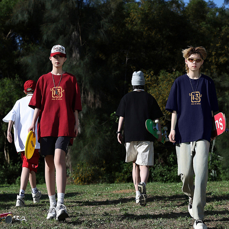 wassup happy短袖t恤男生夏季宽松潮牌上衣美式高街休闲圆领体恤