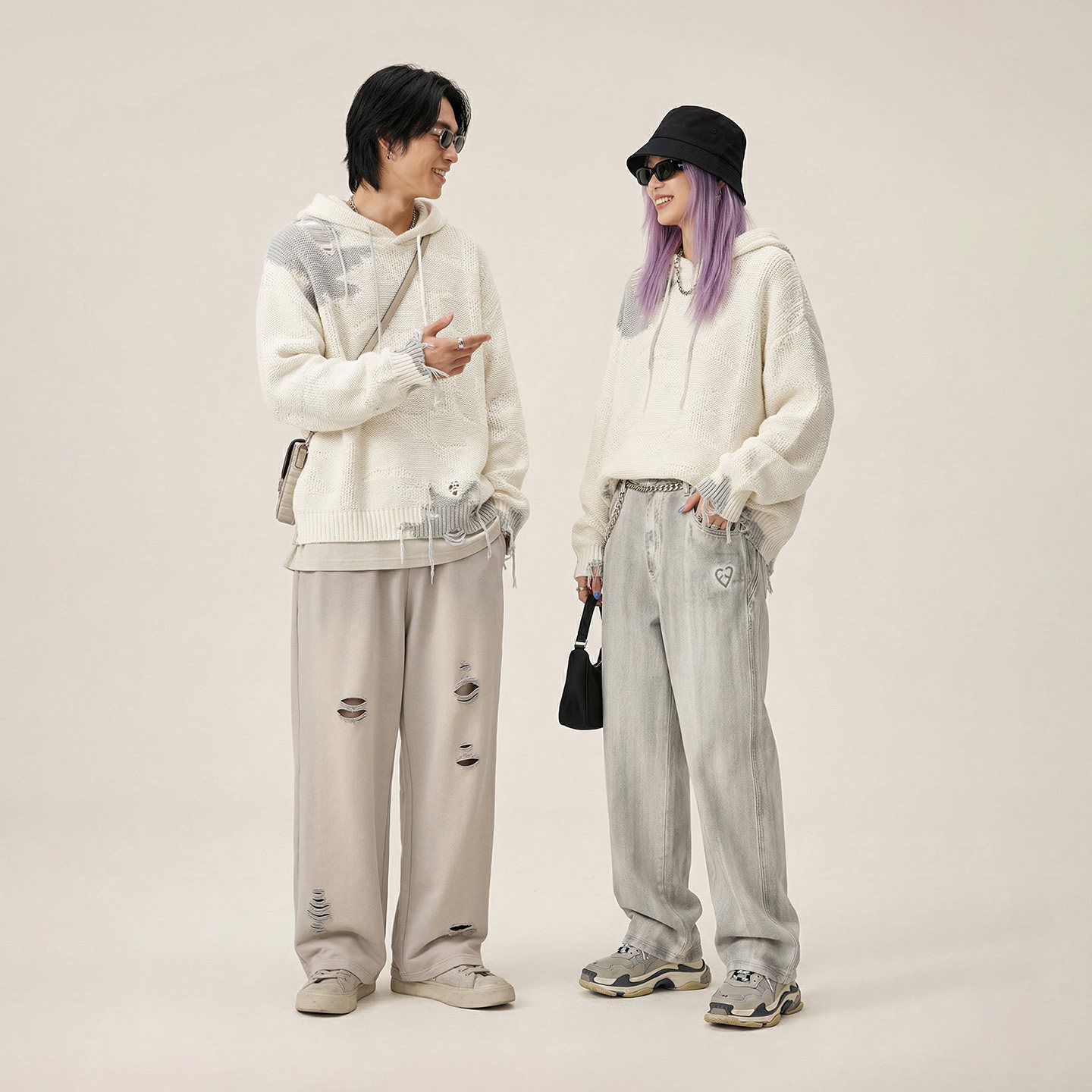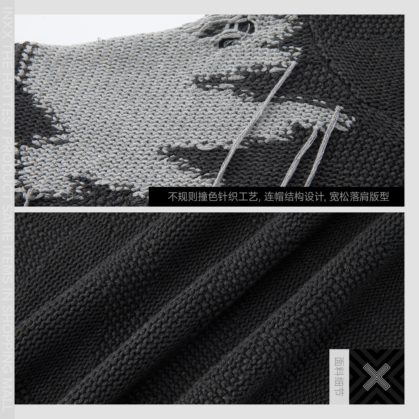 INXX明星同款 潮牌撞色拼接连帽针织衫流苏设计套头毛衣男女同款
