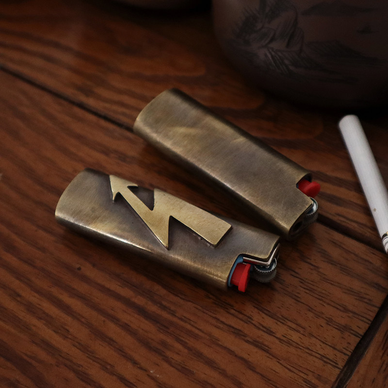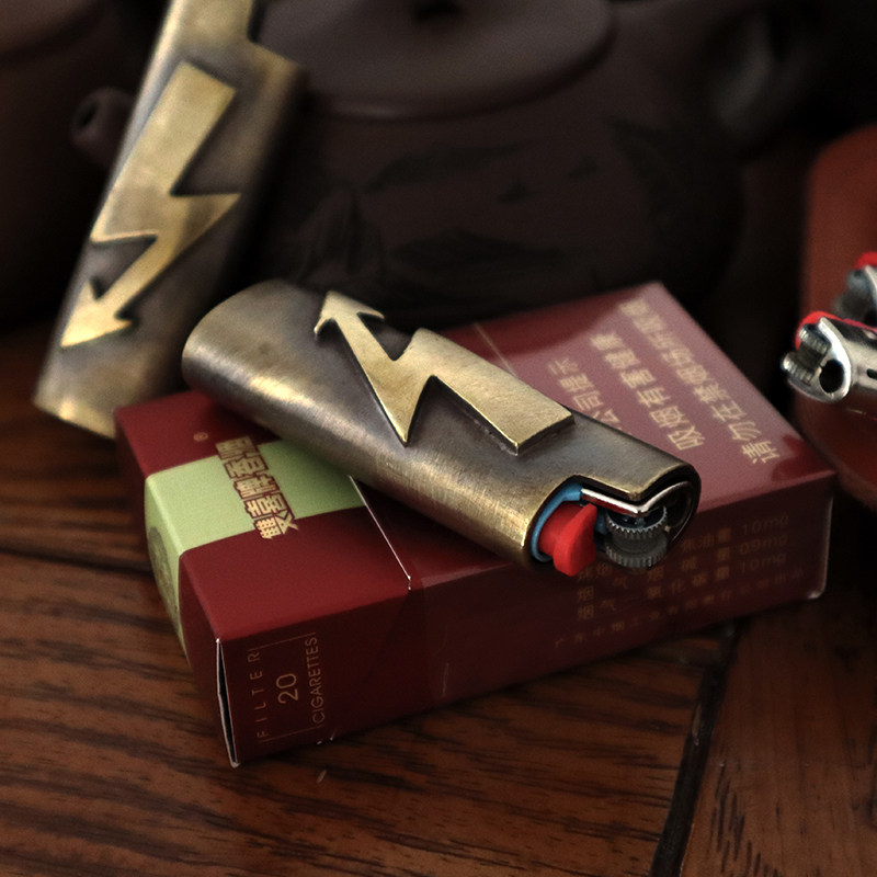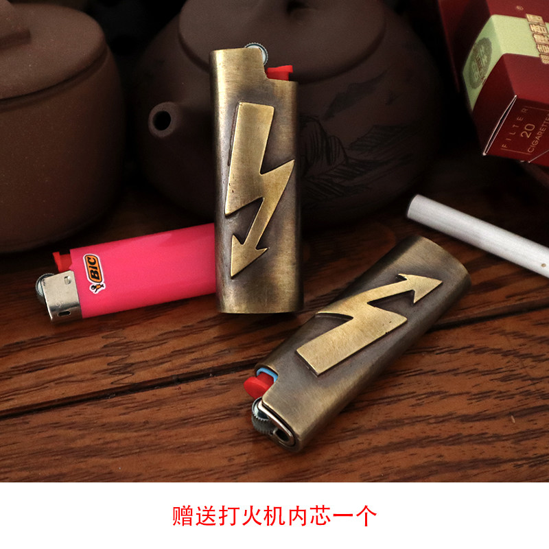 原创设计纯铜加厚BIC比克j3j5打火机套草蜢一次性黄铜火机壳皮套